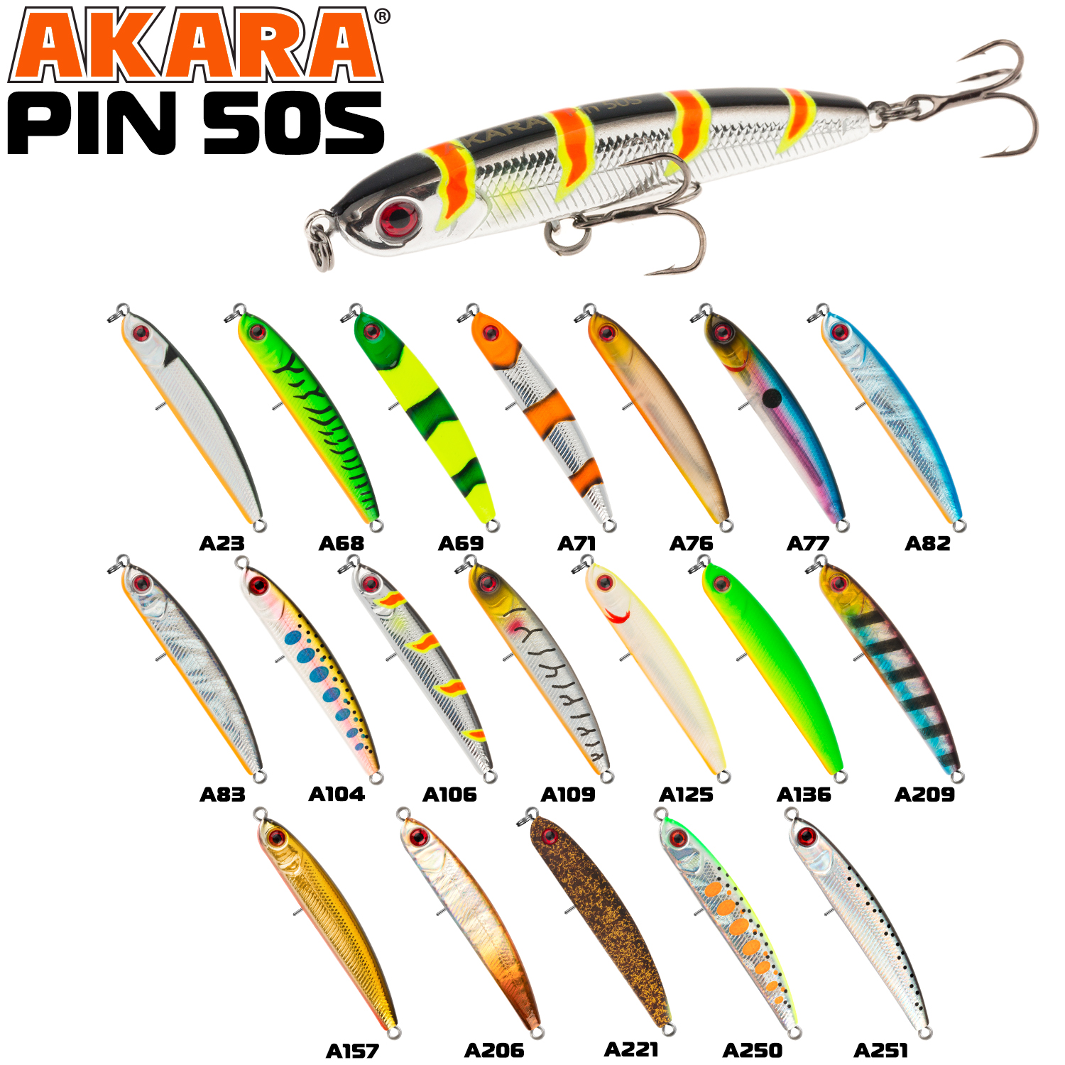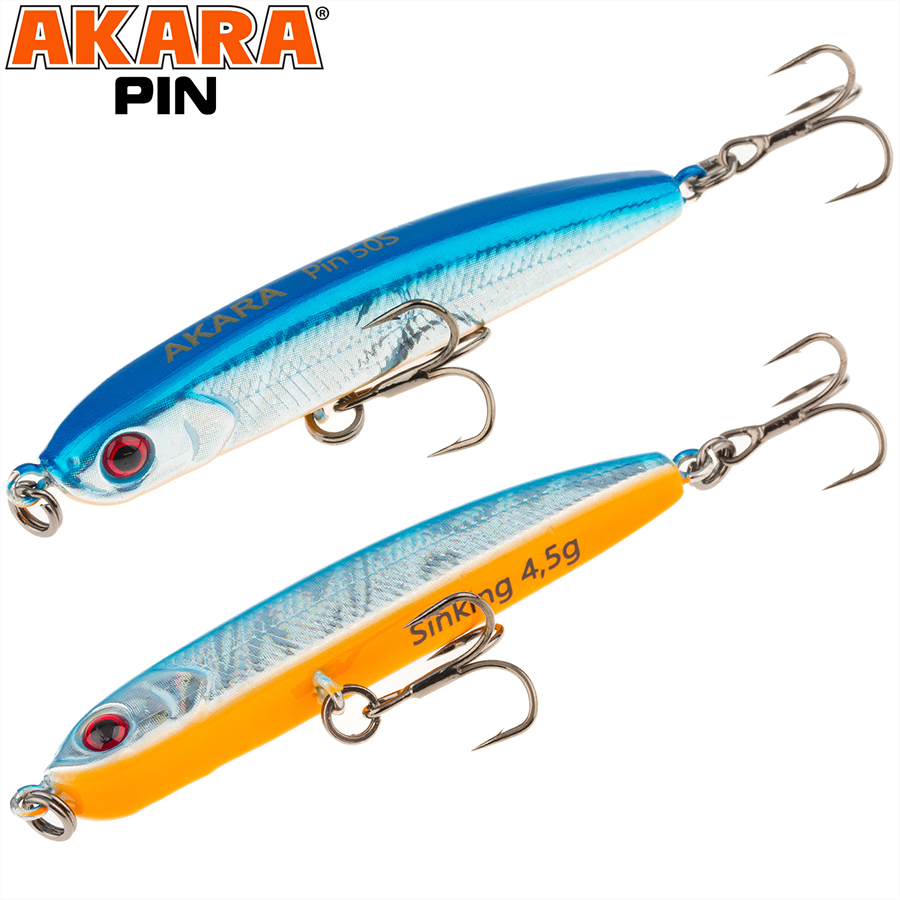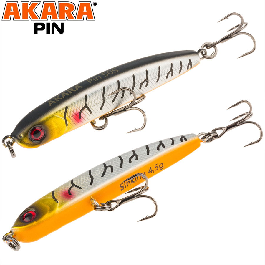 Воблер Akara Pin - даже при ловле в окуневых котлах не всегда получается удачная рыбалка. Чаще всего это происходит потому, что приманка сильно отличается от малька, за которым охотится окунь. Не обязательно попасть в цвет, но форма и размер приманки должны соответствовать пищевому объекту окуня. Akara Pin здесь приходится очень кстати. Стик рассчитан на рывковую проводку с паузами. На паузах приманка тонет и покачивает боками, изображая обессилившую добычу. Полосатый разбойник не может устоять против такого приема. Тонущий.