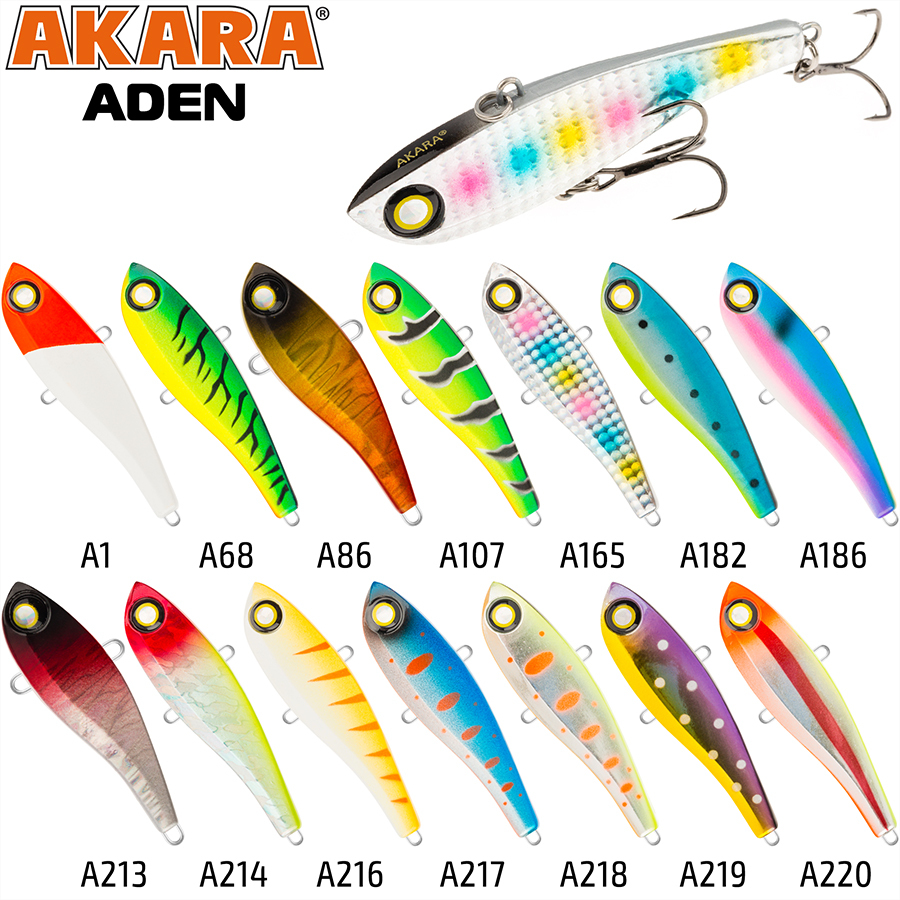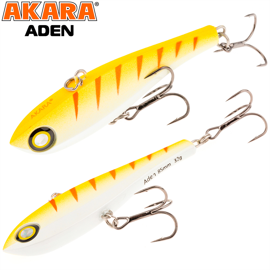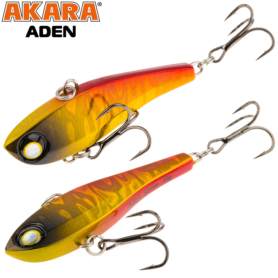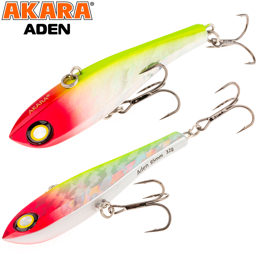 Раттлин Akara ADEN выпускается в двух размерах 68 мм и 16 грамм и 85 мм и 32 грамма. Приманка отлично подходит для ловли, как зимой, так и летом. Отличительной особенностью при ловле в отвес, является планирующая игра на боку. То есть, после потяжки, Aden заваливается на бок и в таком положении опускается. При ловле в заброс обладает высокочастотными колебаниями способными привлечь хищника с дальних расстояний. Раттлин Akara ADEN способен ловить любую хищную рыбу, имеющуюся в водоеме. Особенно хорошо ловит судака. А в 68 размере, подойдет и для ловли прудовой форели. Оригинальное голографическое покрытие, дает дополнительное преимущество и несомненно привлекает рыбу.
