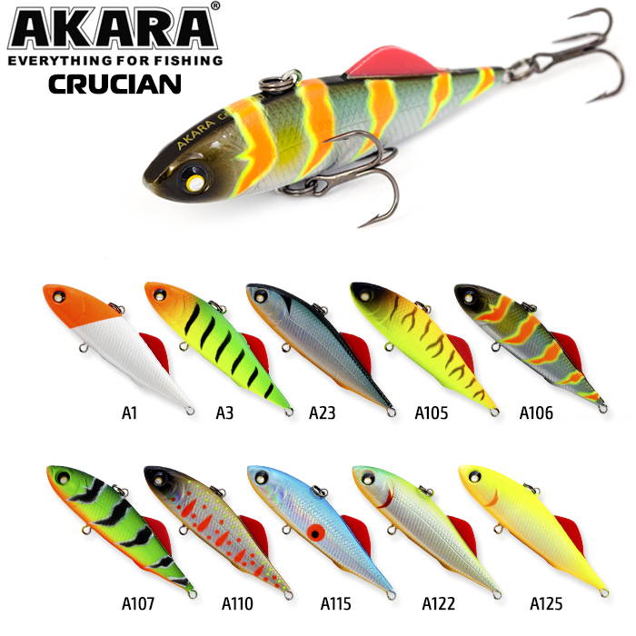 Akara Crucian 60 - безлопастный воблер класса раттлин с довольно компактным телом. Предназначен как для отвесной ловли, так и для ловли в заброс. Особенность данного раттлина - это спинной плавник, дополнительно стабилизирующий игру на всех фазах проводки. Отлично подойдет для ловли судака и окуня, а также других хищников. Тип плавучести - быстротонущий.