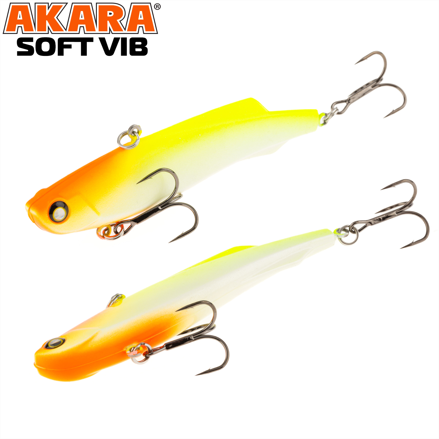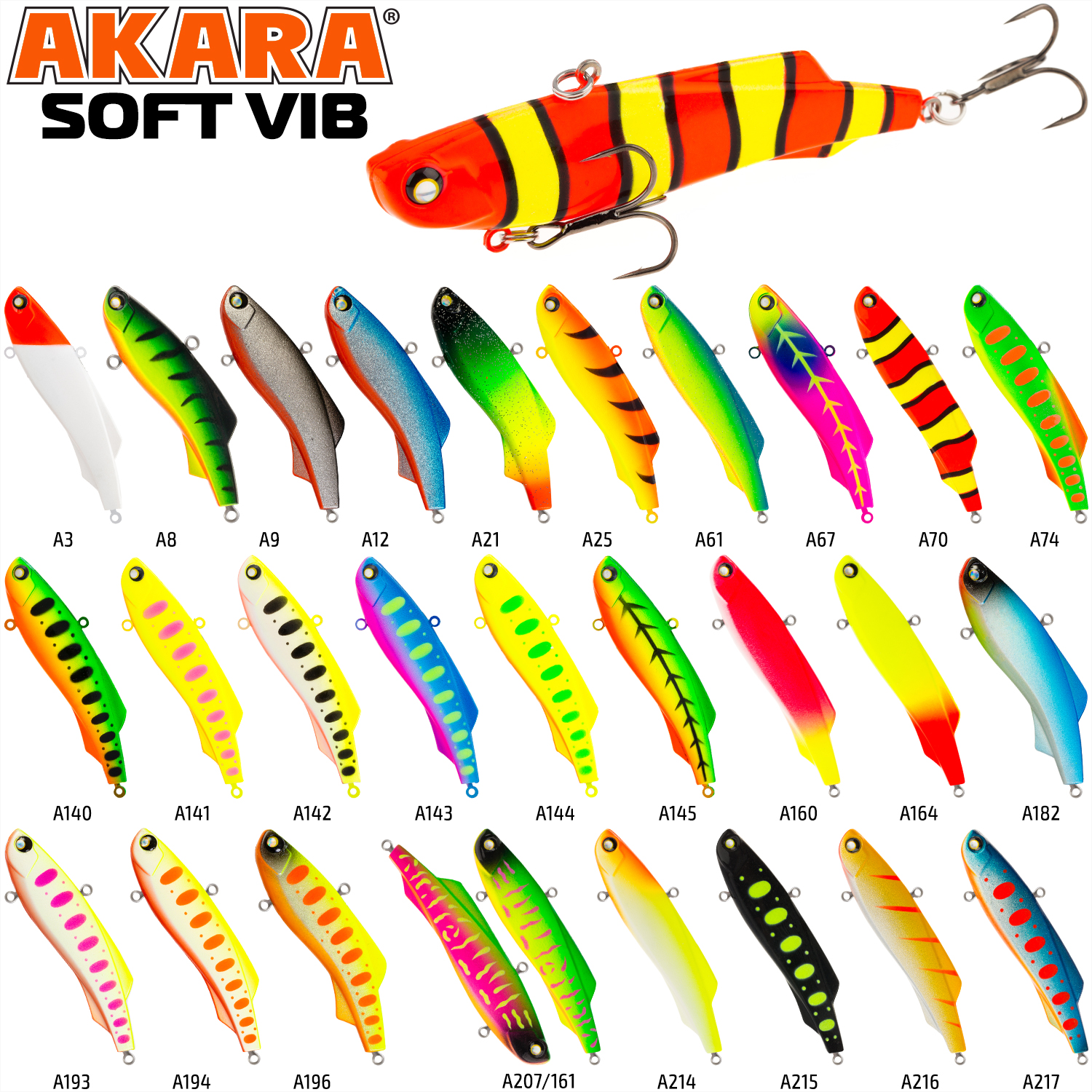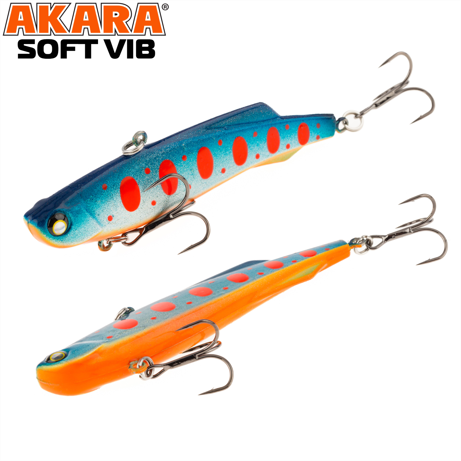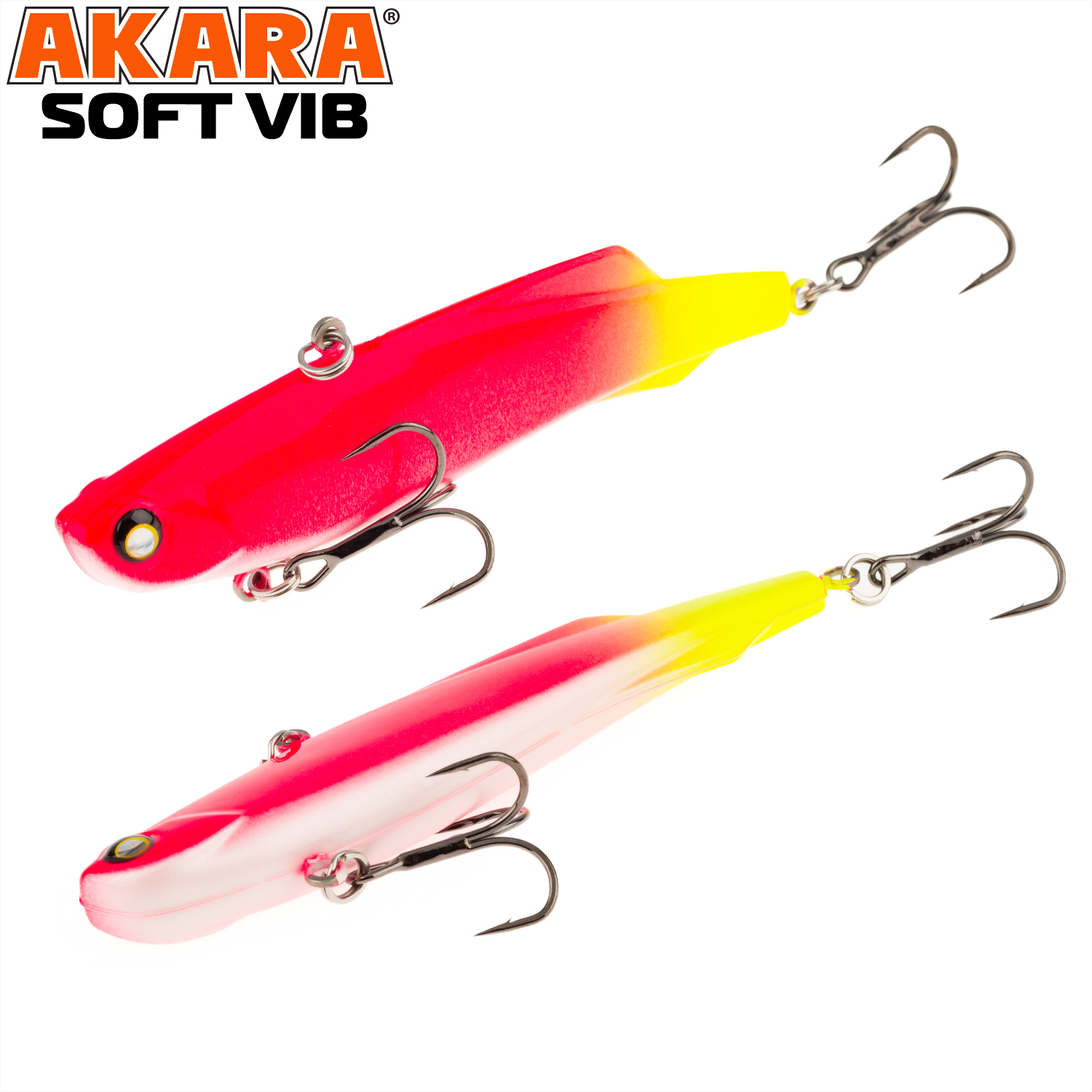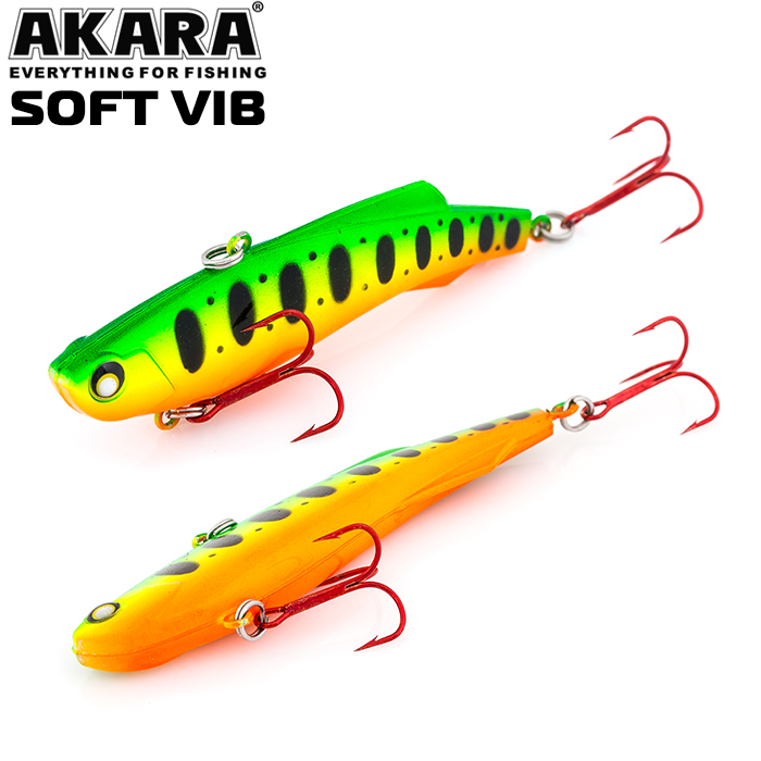 Воблер Akara Soft Vib – безлопастный воблер класса раттлин (rattlin). Отличительная особенность этой приманки – силиконовое тело. Именно благодаря силикону, который похож по жесткости на тело рыбки, при поклевке, хищник не сразу выплевывает приманку, что позволяет сделать своевременную подсечку. Так же, силикон дает возможность пропитывать его разного рода аттрактантами, что позволяет соблазнить на поклевку даже самую пассивную рыбу. В первую очередь Akara Soft Vib предназначен для отвесной ловли судака в зимнее время. Однако с большим успехом применяется для ловли щуки и окуня, как со льда, так и по открытой воде в теплое время года. Тип плавучести – быстро тонущий (top sinking).