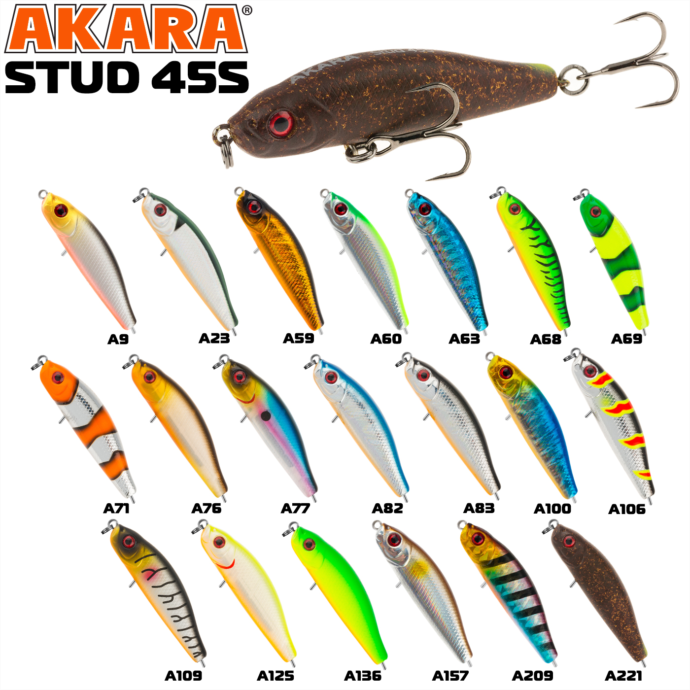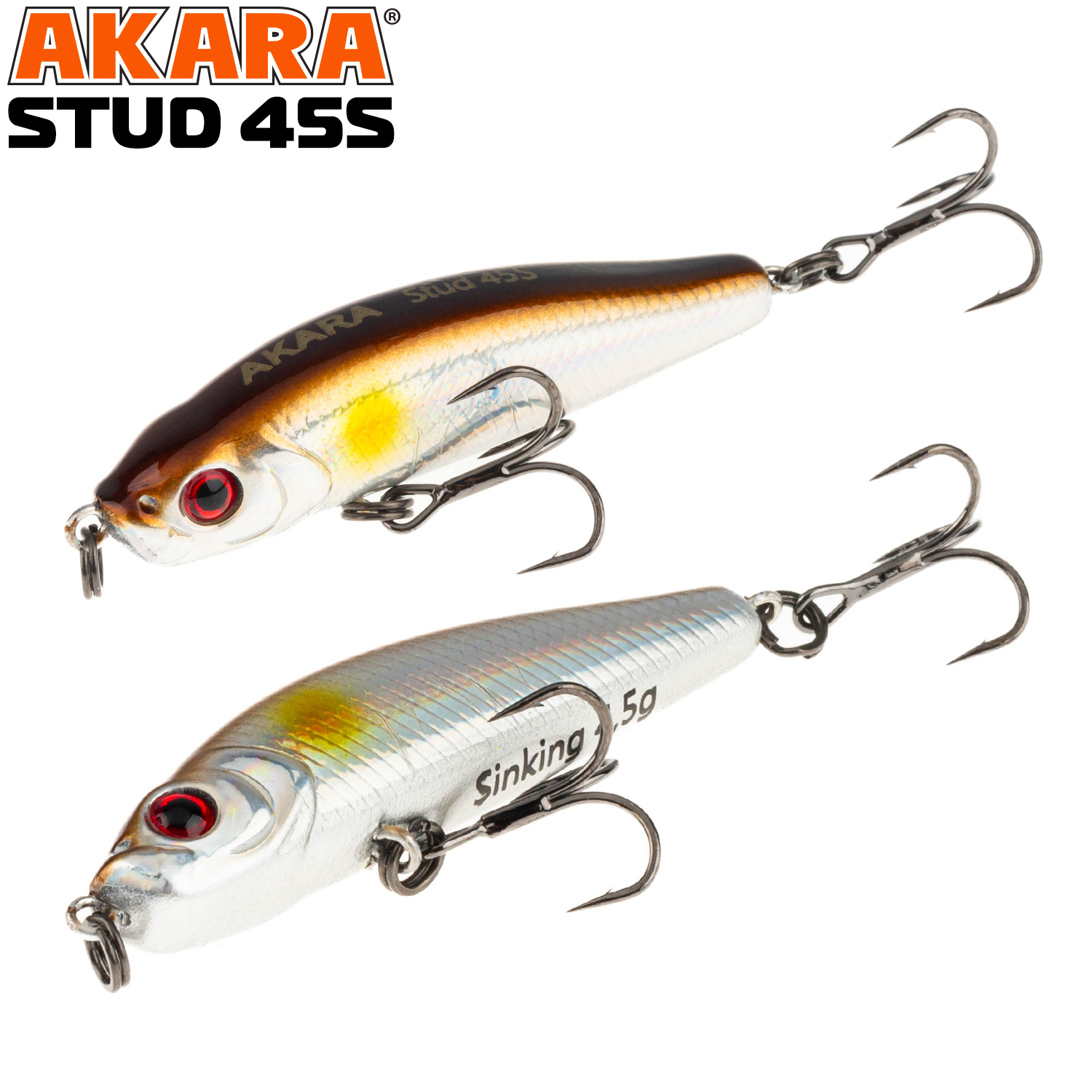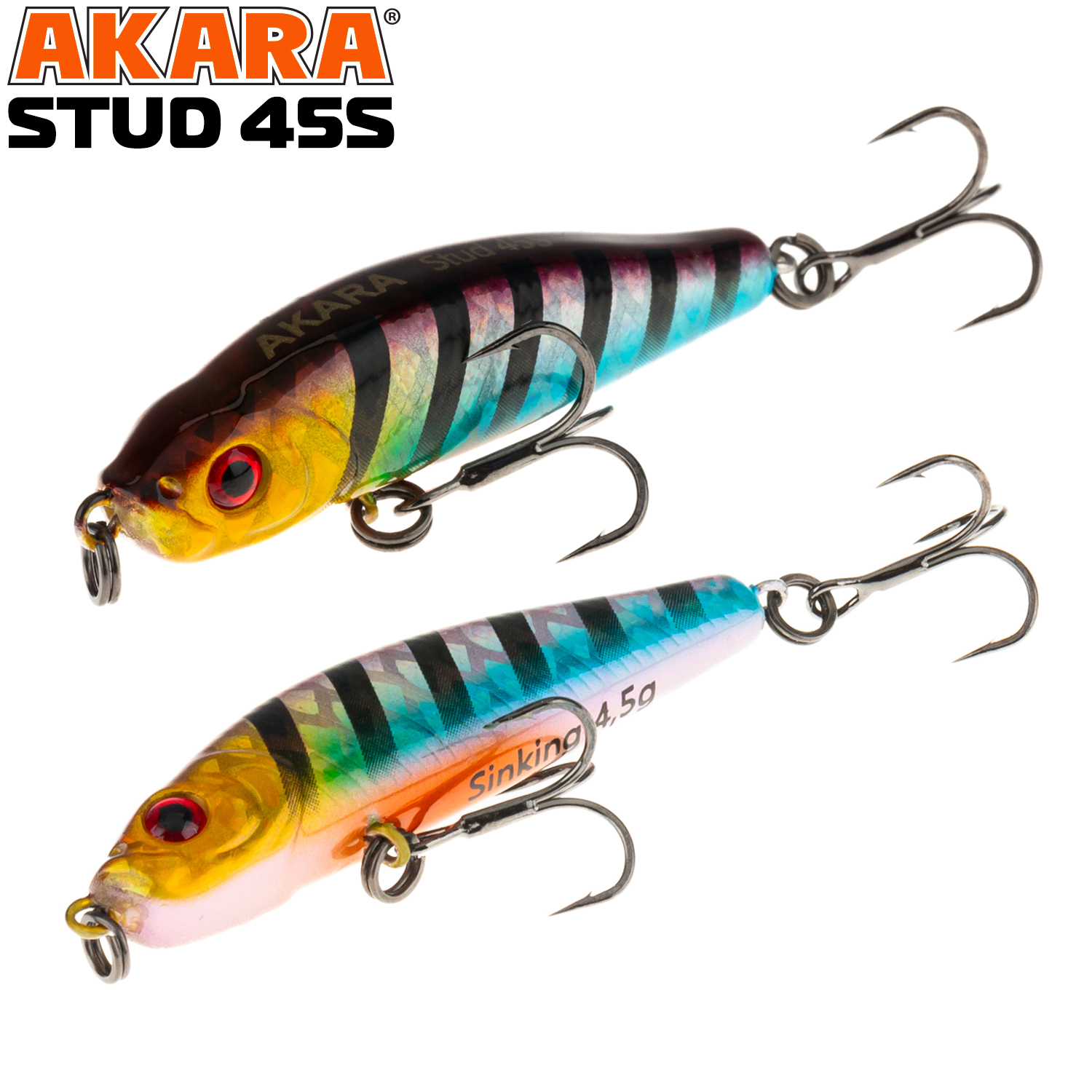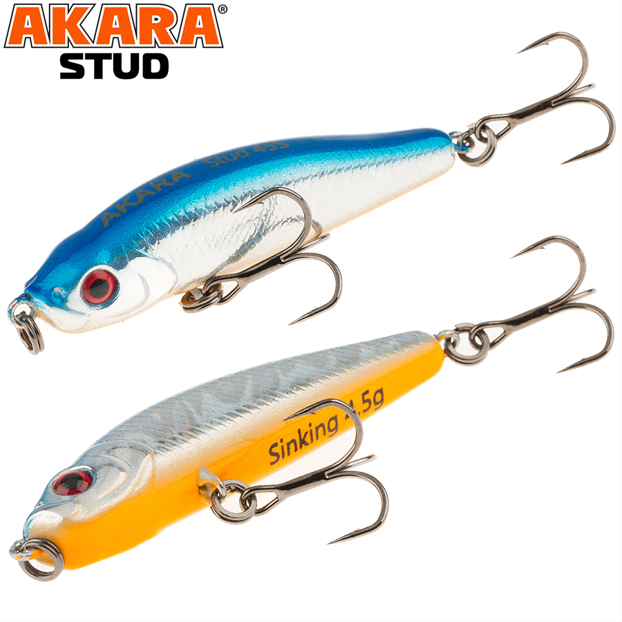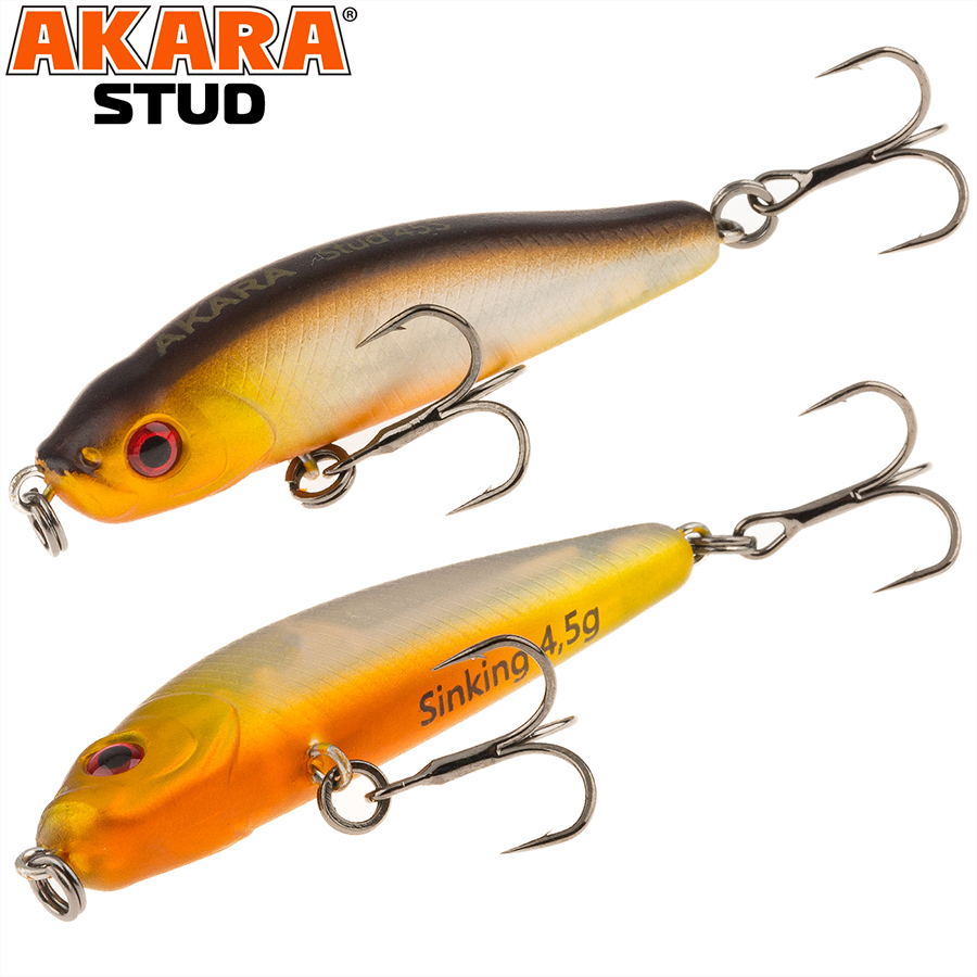 Воблер Akara Stud - ловля окуня в поверхностном слое воды - это конек Студа. Компактный тонущий стик позволяет сделать дальный и точный заброс в точку, где мгновение назад в погоне за мальком плюхнул окунь. Если все сделать быстро, то окунь не устоит и переключит свое внимание с удирающего малька на аппетитный стик. Устоять перед такой приманкой очень сложно. На паузе стик тонет лениво покачивая боками, провоцируя полосатого на атаку. Но и когда активность окуня на поверхности исчезла, не торопитесь менять приманку. Окунь, скорее всего, никуда не ушел. Он здесь же, но опустился ко дну. Выдерживая большие паузы между рывками можно обловить и придонные слои воды. И если приманка окажется в зоне реакции окуня, то он схватит ее и около дна. Тонущий.