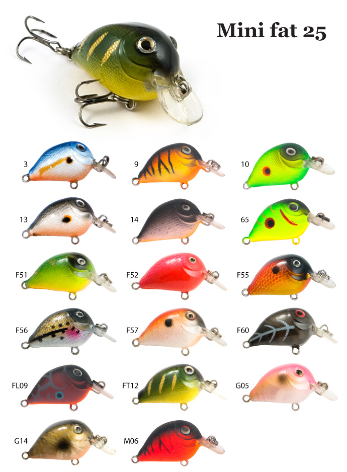 Mini Fat 25 - оригинальный воблер от Raiden для ловли на ультралайт. Тело воблера в форме Fat при небольшом угле атаки делают игру приманки рыскающей и скачущей. Широкая цветовая гамма, пищевых и раздражающих расцветок, делает возможным использовать этот воблер при любой степени освещенности и мутности воды. Плавающий. Заглубление при ловле в заброс от 0 до 1,5 м.