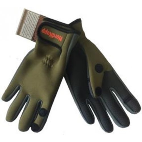 Перчатки Nordkapp Oldervik. Перчатки выполнены из плотного неопрена. Раскрывающаяся манжета регулируется с помощью липучки Velcro. Со стороны ладони перчатки имеют нескользящее покрытие. Для удобства охотника и рыбака верхние фаланги перчаток на большом и указательном пальцах отстегиваются. Состав: 100% неопрен. Размеры: S,M,L,XL.