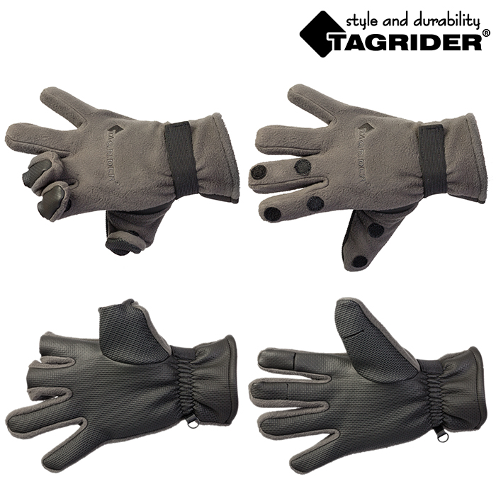 Перчатки Tagrider 095-7 неопреновые флис 3 откидных пальца темный графит.