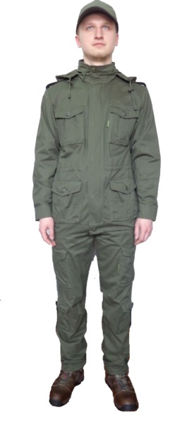 Костюм Nordkapp Forsvar RX. Универсальный легкий костюм на позднюю весну-лето. Состав: 100% хлопок. Комплектация: Куртка, штаны. 4 кармана на пуговицах на куртке. Регулировка талии с помощью шнурка. Капюшон легко убирается в воротник-стойку. Брюки с поясной резинкой и шлевками под ремень. 8 карманов на штанах. Цвет: Хаки.