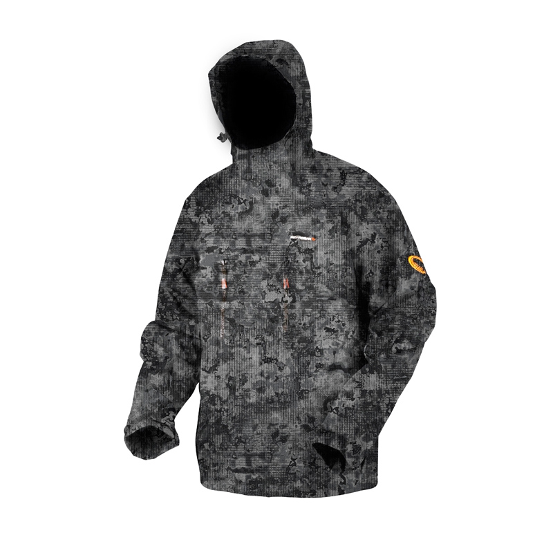 Основная ткань: прочный, двухслойный 100% нейлоновый таслон 228T (taslon) с надежным водоотталкивающим покрытием. На 100% водонепроницаемая (8000 мм), непродуваемая ткань с высокой паропроницаемостью (8000 mvp). Ламинированная (PU) мембрана, проклеенные швы. Удобная, мягкая сетчатая подкладка из 100% полиэстера. Камуфляжная расцветка Mimicry 3D Urban с подкладкой и отделкой черного цвета. 2 больших нагрудных кармана, куда можно поместить коробки и 2 кармана для обогрева рук с флисовой подкладкой. На всех карманах – прочная застежка-молния. 1 внутренний карман с100% водонепроницаемым гермопакетом для телефона или фотоаппарата. Регулируемая кулиска на талии и внизу куртки. Превосходный дизайн капюшона: регулировка в двух направлениях эластичным шнурком, усиленный козырёк, можно убрать в стойку воротника. На спине D- образное кольцо для подсачека. На манжетах регулируемые резиновые ремешки.