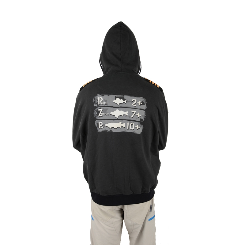 Крутая серия одежды отлично подходит для рыбалки в пресных водоемах! Высококачественная ткань из 100% хлопка толщиной 340гр/м2 для того, чтобы изделие лучше держало форму. Ворсистая изнаночная сторона. Регулируемый капюшон защитит от непогоды и создаст правильный повседневный образ. Капюшон на подкладке из 100% мягкого, трикотажного хлопка. Широкие эластичные манжеты и пояс из высококачественной лайкры. Застежка молния на всю длину толстовки. 2 боковых кармана для обогрева рук. Техника нанесения принта Discharge printing (мягкий рисунок) для максимального комфорта. Вышитые нашивки на груди и плечах. Декоративная строчка контрастного цвета. Напечатанная этикетка на изнанке изделия, чтобы не вызывать раздражения кожи.