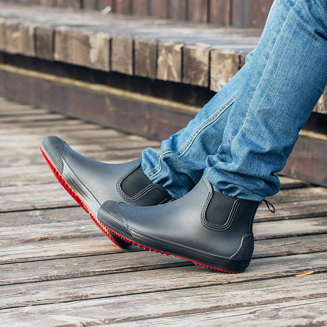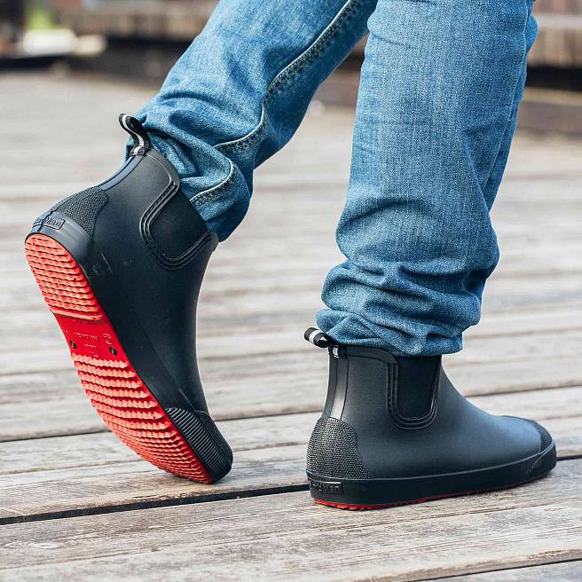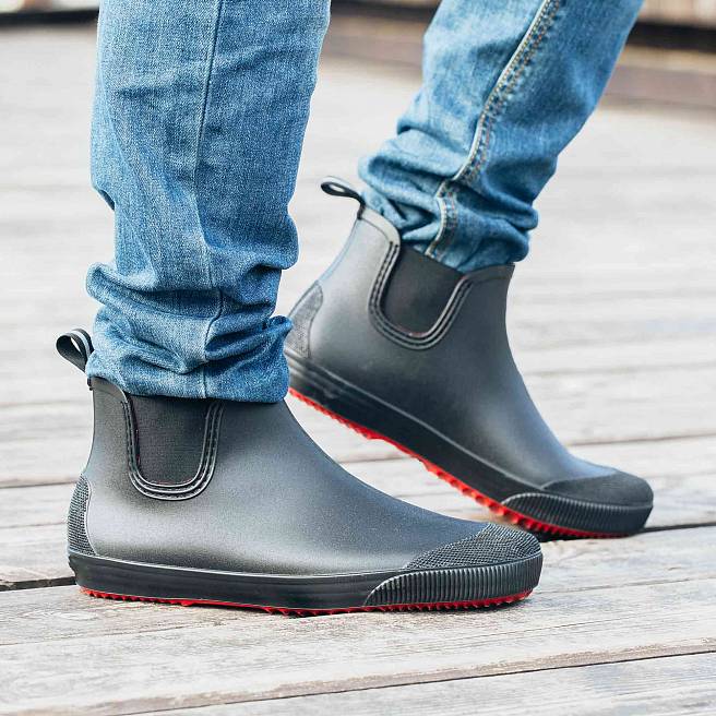 Мужские резиновые ботинки Nordman Beat выполнены из водонепроницаемого экологичного материала, имитирующего изделие из кожи. Изнутри в ботинок встроена эластичная вставка и специальная петелька для удобства обувания. Демисезон, лето. Комфортная температура эксплуатации до +5С. Материал подошвы - ПВХ. Материал верха - ПВХ. Материал стельки - Полиэстер. Средняя высота - 13см. Средний вес пары 1кг.