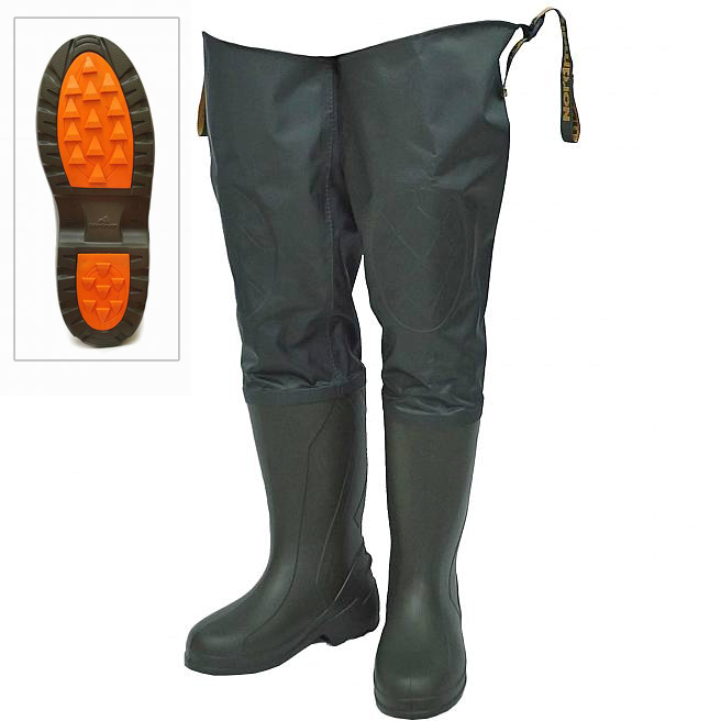 Сапоги забродные Nordman Expert ПЕ-22 (ТЭП) РН для демисезонной и летней рыбалки. Базовый сапог из ЭВА с усиленной ТЭП подошвой. Верх выполнен из легкой и прочной нейлоновой ткани. Двойная проклейка шва гарантированно защищает обувь от протечек. Средний вес пары 1.15 кг.