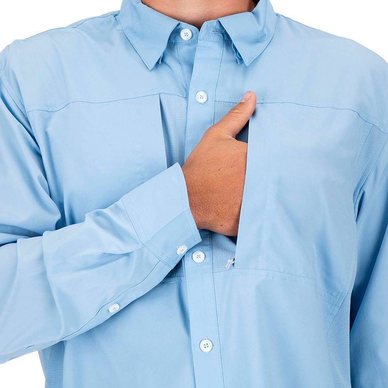 Стильная рубашка Simms Albie Shirt с длинными рукавами отличного качества. Благодаря своему дизайну, она всегда будет выглядеть уместно - даже если вы перестанете ловить рыбу на спонтанный перерыв в баре. Спортивный крой и рукава со спандекс вставками гарантируют первоклассную свободу движений и превосходный комфорт при носке. Кроме того, солнцезащитный фактор UPF50+ создает надежную защиту от солнца. Высококачественная рубашка с длинными рукавами, искусно дополненная двумя карманами на молнии и вшитой салфеткой для полировки очков. Два нагрудных кармана на молнии для хранения аксессуаров.