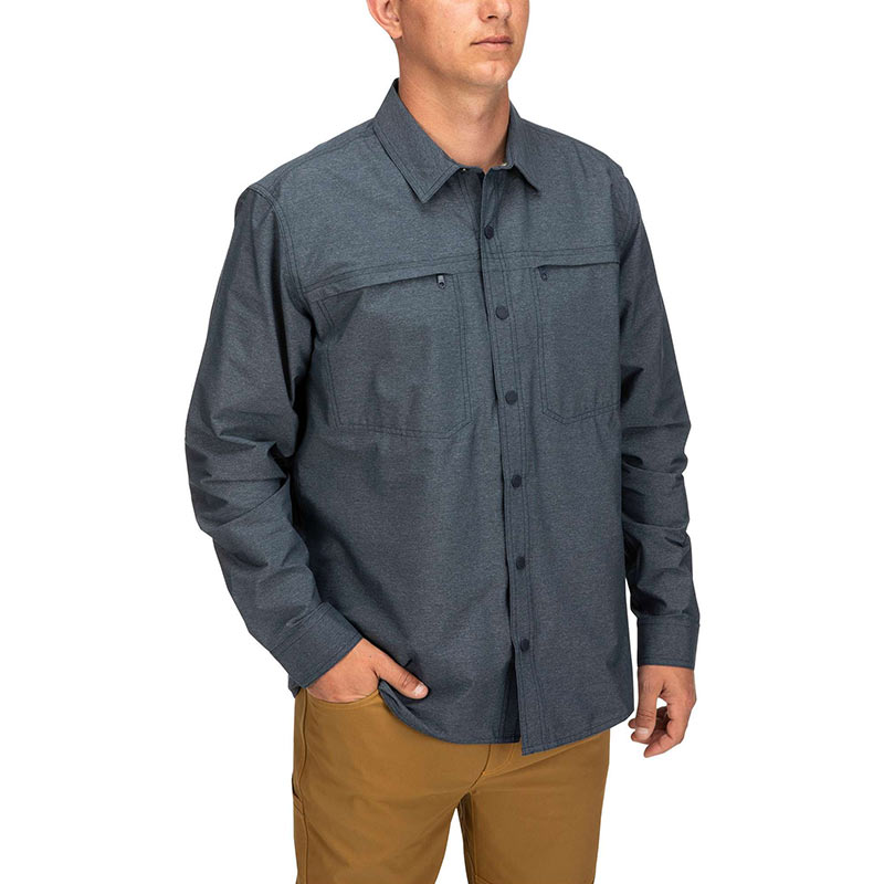Классическая рубашка на пуговицах из эластичного материала, удобного для рыбалки и активного отдыха. Особенности: Эластичная ткань из смесового нейлона для максимальной свободы движений. Карманы на молниях спереди. ТКАНЬ: 158 г / м2, 65% нейлон / 31% полиэстер / 4% спандекс.