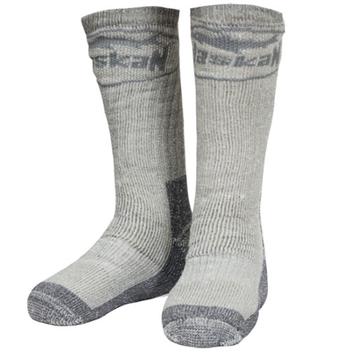Комфортные высокие носки Alaskan Super Warm. За счет особенностей вязки верхняя часть плотно облегает ногу, благодаря чему носок не сползает. Стрейч-вставка на подъеме стопы обеспечивает превосходное облегание и поддержку, а усиленная пятка - долговечность. Внутренняя часть носков Alaskan Super Warm имеет начес в виде петель для быстрого выведения влаги и сохранения тепла.