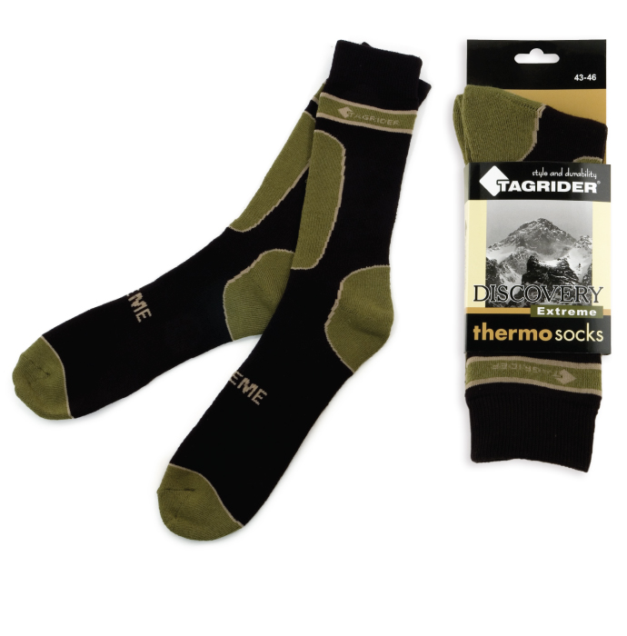 Термоноски Discovery Extreme предназначены для повседневной носки, туризма, охоты и рыбалки в холодную погоду. Обладают повышенной износоустойчивостью и высокими влагоотводящими свойствами. Входящий в состав ткани модифицированный полипропилен (Ppmod) увеличивает срок службы носков, отлично выводит влагу, сохраняет первоначальную структуру ткани и позволяет носкам быстро сохнуть. Многозональная структура вязки, выполненная с учетом анатомических особенностей ноги, обеспечивает дополнительный комфорт и защиту при носке. Усиленные пятка и носок. Гипоаллергенны. Состав: 70% модифицированный полипропилен, 6% нейлон, 3% эластан, 21% спандекс.