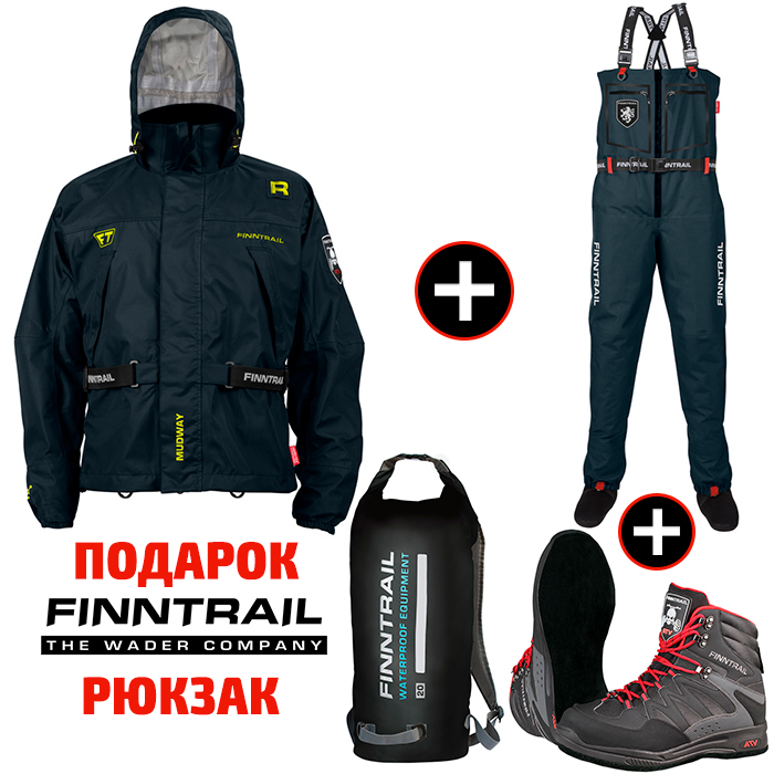 Комплект забродной экипировки Finntrail Sprinter-Z-New Mudway-Speedmaster включает в себя: Вейдерсы Finntrail Sprinter-Z 1529 Denim, Забродная куртка Finntrail New Mudway Graphite, Ботинки для вейдерсов Finntrail Speedmaster Felt Sole 5201. При покупке данного комплекта вы получаете Герморюкзак Finntrail Target 20L 1716 стоимостью 2090 руб. абсолютно бесплатно! Вейдерсы Finntrail Sprinter-Z 1529 Denim:Вейдерсы - флагман коллекции Denim. Модель идеальна для профессионалов забродной рыбалки и любителей внедорожной езды. Вейдерсы классического кроя со слитными неопреновыми носками выполнены из четырехслойной ткани с мембраной HARD-TEX. Внутренняя часть вейдерсов, на местах соприкосновения с квадроциклом, абсолютно бесшовна, что увеличивает срок службы. Забродная куртка Finntrail New Mudway Graphite: Стильная куртка с высокой степенью защиты от воды и грязи. Куртка имеет четыре вместительных кармана с влагозащитными молниями: два внешних с дополнительными защитными клапанами и два внутренних для личных вещей. Куртка оснащена креплением для рации, световозвращающими элементами. Основная молния устойчива к попаданию грязи, благодаря клапану с магнитной системой застежки. Капюшон убирается в воротник для более удобного использования. Регулируемые внутренние манжеты защищают от затекания воды в рукава. Куртка сшита из трехслойной ткани с мембраной «HARD-TEX». В этой модели использованы все технологии, обеспечивающие долгий срок службы и комфорт. Куртка оснащена эластичным ремнем с логотипами Finntrail на замке YKK, воротником с флисовой отделкой, кулисой для подгонки по фигуре. Характеристики: Трехслойная ткань с мембраной «HARD-TEX». Высокая водонепроницаемость 15 000 мм. Дышащая способность 7000г./м2/24ч. Грязеотталкивающее покрытие TEFLON. Внутренние манжеты с защитой от затекания воды в рукава. Два внешних влагозащитных кармана. Два внутренних кармана. Магнитная застежка вместо липучек. Световозвращающие элементы 3М для безопасности на дороге. Крепление для рации на плече. Эластичный ремень с логотипами Finntrail на замке YKK. Страховочные кольца для крепления чеки. Ботинки для вейдерсов Finntrail Speedmaster Felt Sole 5201: В этих ботинках достигнуты наивысшие показатели износостойкости и комфорта. Максимальная защита с уровнем комфорта спортивных кроссовок. В этой модели использованы самые износостойкие материалы. Ботинки оснащены подошвой из резины или фетра (войлока) с максимальным сцеплением на скользких камнях. Лучший выбор для рыбалки или езды на квадроцикле.