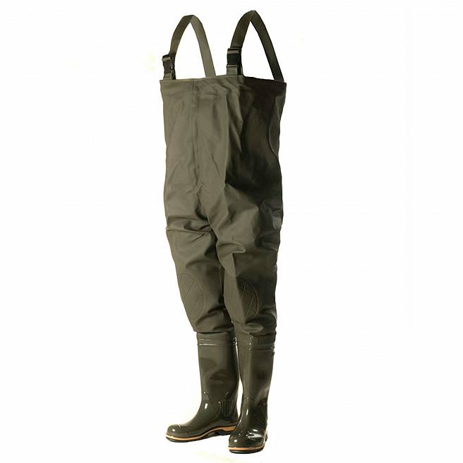 Классический рыбацкий полукомбинезон. Верх - из легкой водонепроницаемой ПВХ-ткани (винитол) крепится к базовому сапогу из ПВХ на современном итальянском оборудовании при помощи сварки током высокой частоты. Это гарантирует абсолютную водонепроницаемость. Дополнительно применяется технология двойного шва, которая придает еще большую прочность, износостойкость и герметичность. Мужские. Материал подошвы ПВХ. Материал верха ПВХ. Без подкладки. Средний вес пары 3 кг.