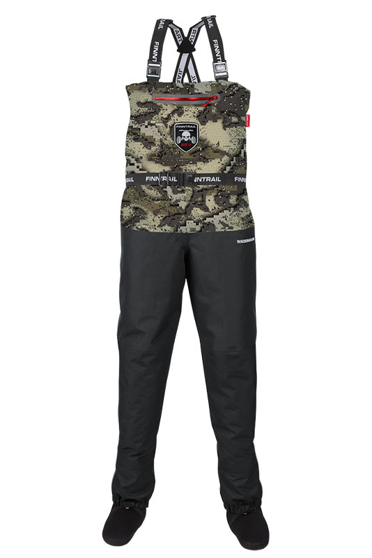 Облегченные вейдерсы для тех, кто предпочитает комфорт. У Wademan минимальное количество швов, особенно во внутренней области ног. Многим знакомо, что вейдерсы по мере износа начинают протекать по швам, меньше швов — выше надежность. Нижняя часть вейдерсов (до пояса) выполнена из прочной четырехслойной ткани с мембраной «HARD-TEX», верх — из облегченной ткани. Вейдерсы оснащены двумя карманами с защитой от воды, анатомическим кроем, D-образными петлями, петлями для просушки, эластичными подтяжками и ремнем с логотипами Finntrail на замке YKK. В комплекте гермочехол для смартфона и документов, а также удобная сумка для хранения и переноски. Характеристики: Износостойкая четырехслойная ткань с мембраной «HARD-TEX». Усиление ниже пояса. Высокая водонепроницаемость 20 000 мм. Дышащая способность 7000г./м2/24ч. Грязеотталкивающее покрытие TEFLON. Эластичные подтяжки и ремень с логотипами Finntrail на замке YKK. Вместительный влагозащитный нагрудный карман. Дополнительный выкидной карман. Петли для просушки. Надежные неопреновые носки толщиной 4 мм с усилением на подошве. В комплекте гермочехол для смартфона и документов