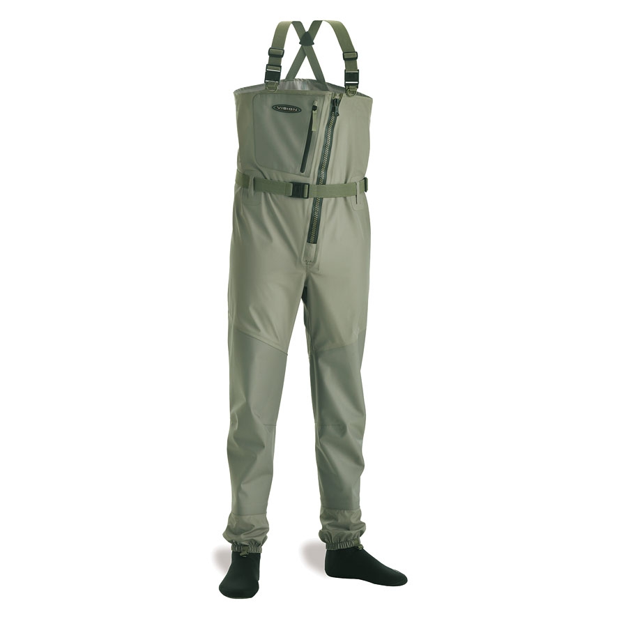 "Полукомбинезоны IKON Zip созданы на основе легендарной модели Vision Extreme, но с улучшенными характеристиками. 3/6 слойное усиление материала F3,5 обеспечивает наибольшую надежность и комфорт во время рыбалки. Эластичный ремень, водонепроницаемый передний карман, петли для просушки и особый крой на ногах и сзади (высокая спина) – все это позволяет говорить о достижении этой модели нового уровня производства забродных комбинезонов. Дышащий и водонепроницаемый материал F3.5. 3-слойное усиление в верхней части и 6-слойное от колена и ниже. Эластичный ремень с двумя петлями. Эластичные лямки