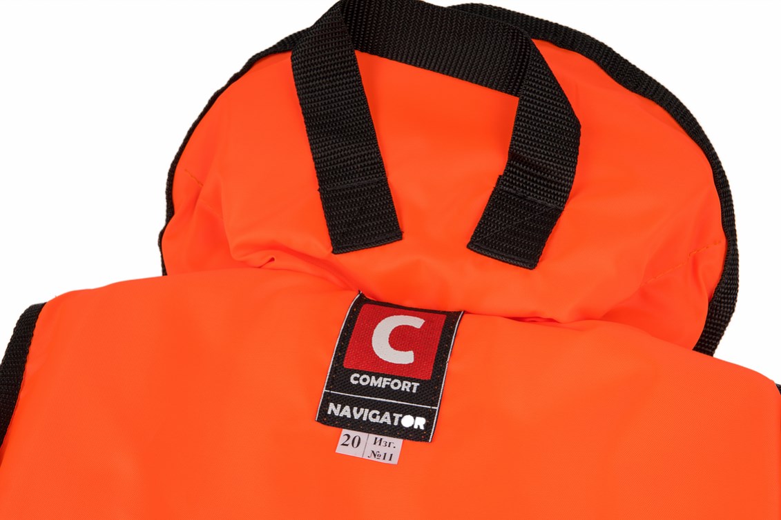Спасательный жилет Comfort Navigator - классическая модель, предназначенная по размерам, как для детей, так и для взрослых. Имеет расцветку сигнального ярко оранжевого цвета. По конструкции имеет два объёмных кармана и один нагрудный под телефон или навигатор. Благодаря высокому воротнику надежно поддержит голову над водой и не допустит опускание ее под воду в случае, когда человек находится в бессознательном состоянии, а так же защитит от холодного ветра на воде. Жилет оснащен ярлыком с указанием номера сертификата соответствия и ТУ производителя соответствующего требованиям нормативных документов по ГОСТ 22336-77, п. п. 2.2, 2.6, 5.5, 5.7. Сертификат имеет юридическую силу на всей территории Российской Федерации. Размеры: детские: 20 кг, 40 кг., взрослые: 60 кг, 80 кг, 100 кг, 120 кг, 140 кг+.