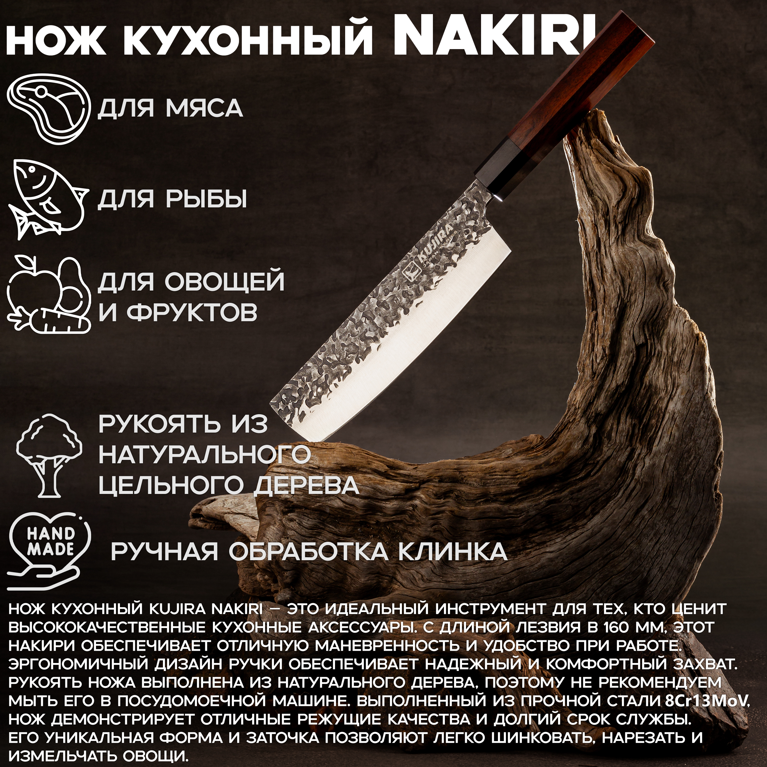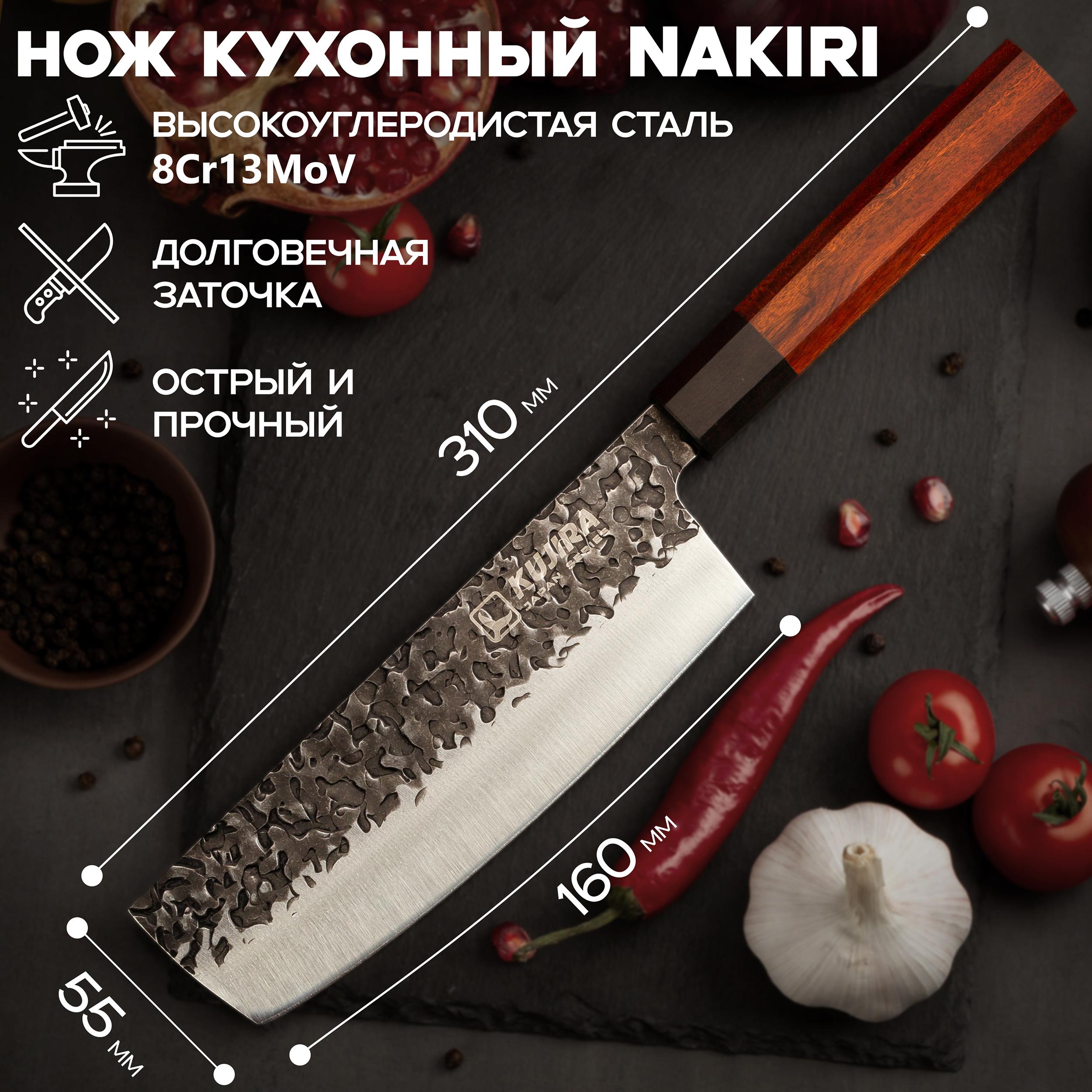 Нож кухонный Kujira Japan Series Nakiri 160 mm сталь 8Cr13MoV