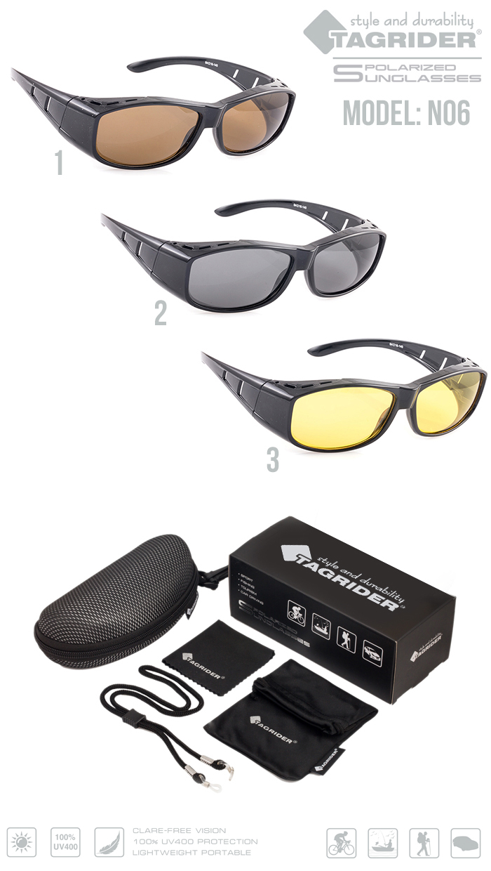 Поляризационные очки Tagrider оснащены прогрессивным 400 UV фильтром защиты от ультрафиолетового излучения, что позволяет полностью убрать негативное воздействие света на глаза и использовать их на солнце с любой интенсивностью. Прогрессивный светофильтр сохраняет всю гамму цветов предмета и усиливает свое действие с увеличением интенсивности света. Стекла с многослойной поляризацией снимают блики с любых отражающих поверхностей и делают изображение более чётким. Затылочный держатель с фиксатором, предотвратит падение и обеспечит надежную посадку очков даже при активном движении или занятии спортом. Очки выполнены из гипоаллергенного ударопрочного полимера марки ABS. В комплекте специальная карточка для проверки поляризации очков.