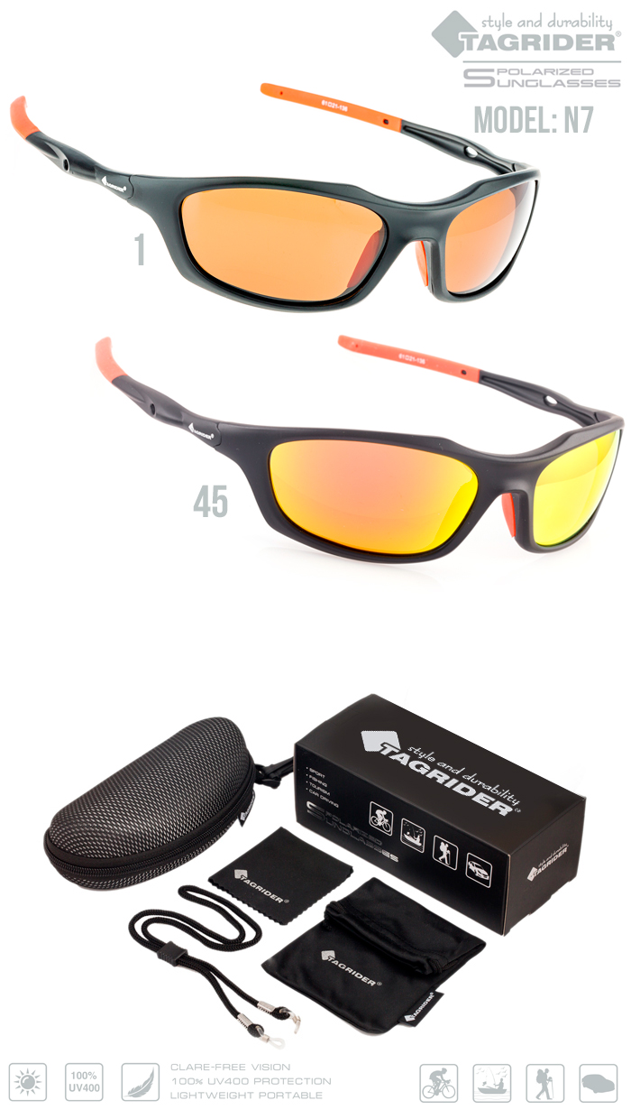 Поляризационные очки Tagrider оснащены прогрессивным 400 UV фильтром защиты от ультрафиолетового излучения, что позволяет полностью убрать негативное воздействие света на глаза и использовать их на солнце с любой интенсивностью. Прогрессивный светофильтр сохраняет всю гамму цветов предмета и усиливает свое действие с увеличением интенсивности света. Стекла с многослойной поляризацией снимают блики с любых отражающих поверхностей и делают изображение более чётким. Затылочный держатель с фиксатором, предотвратит падение и обеспечит надежную посадку очков даже при активном движении или занятии спортом. Очки выполнены из гипоаллергенного ударопрочного полимера марки ABS. В комплекте специальная карточка для проверки поляризации очков.
