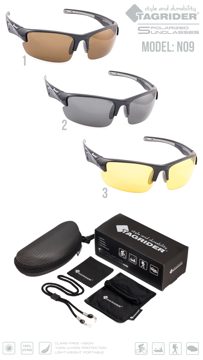 Поляризационные очки Tagrider оснащены прогрессивным 400 UV фильтром защиты от ультрафиолетового излучения, что позволяет полностью убрать негативное воздействие света на глаза и использовать их на солнце с любой интенсивностью. Прогрессивный светофильтр сохраняет всю гамму цветов предмета и усиливает свое действие с увеличением интенсивности света. Стекла с многослойной поляризацией снимают блики с любых отражающих поверхностей и делают изображение более чётким. Затылочный держатель с фиксатором, предотвратит падение и обеспечит надежную посадку очков даже при активном движении или занятии спортом. Очки выполнены из гипоаллергенного ударопрочного полимера марки ABS. В комплекте специальная карточка для проверки поляризации очков.