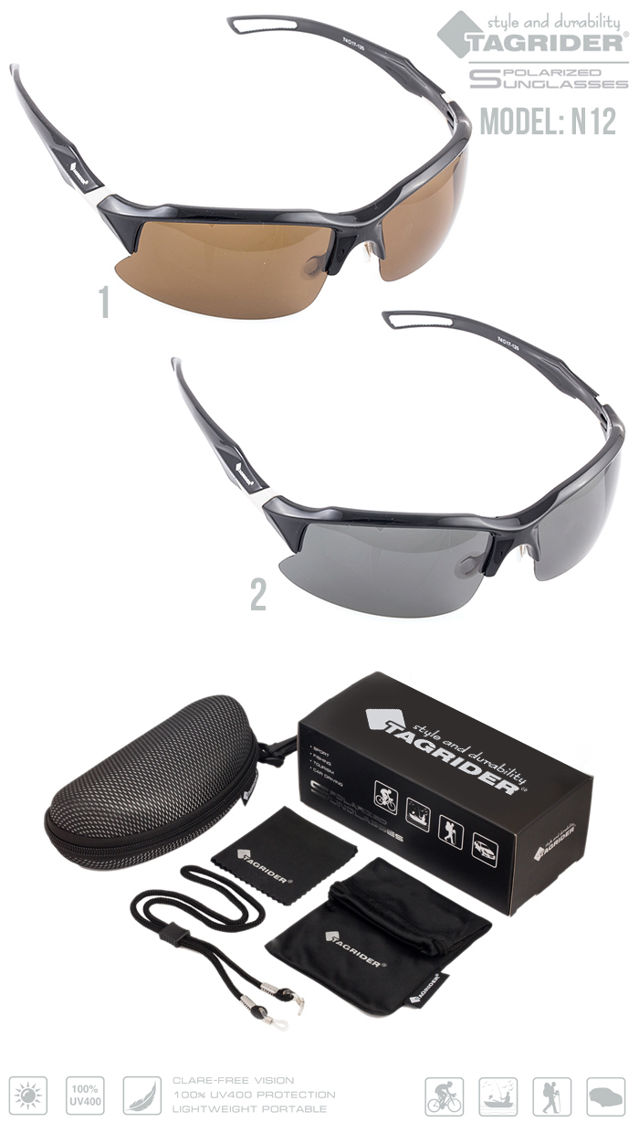 Поляризационные очки Tagrider оснащены прогрессивным 400 UV фильтром защиты от ультрафиолетового излучения, что позволяет полностью убрать негативное воздействие света на глаза и использовать их на солнце с любой интенсивностью. Прогрессивный светофильтр сохраняет всю гамму цветов предмета и усиливает свое действие с увеличением интенсивности света. Стекла с многослойной поляризацией снимают блики с любых отражающих поверхностей и делают изображение более чётким. Затылочный держатель с фиксатором, предотвратит падение и обеспечит надежную посадку очков даже при активном движении или занятии спортом. Очки выполнены из гипоаллергенного ударопрочного полимера марки ABS. В комплекте специальная карточка для проверки поляризации очков.