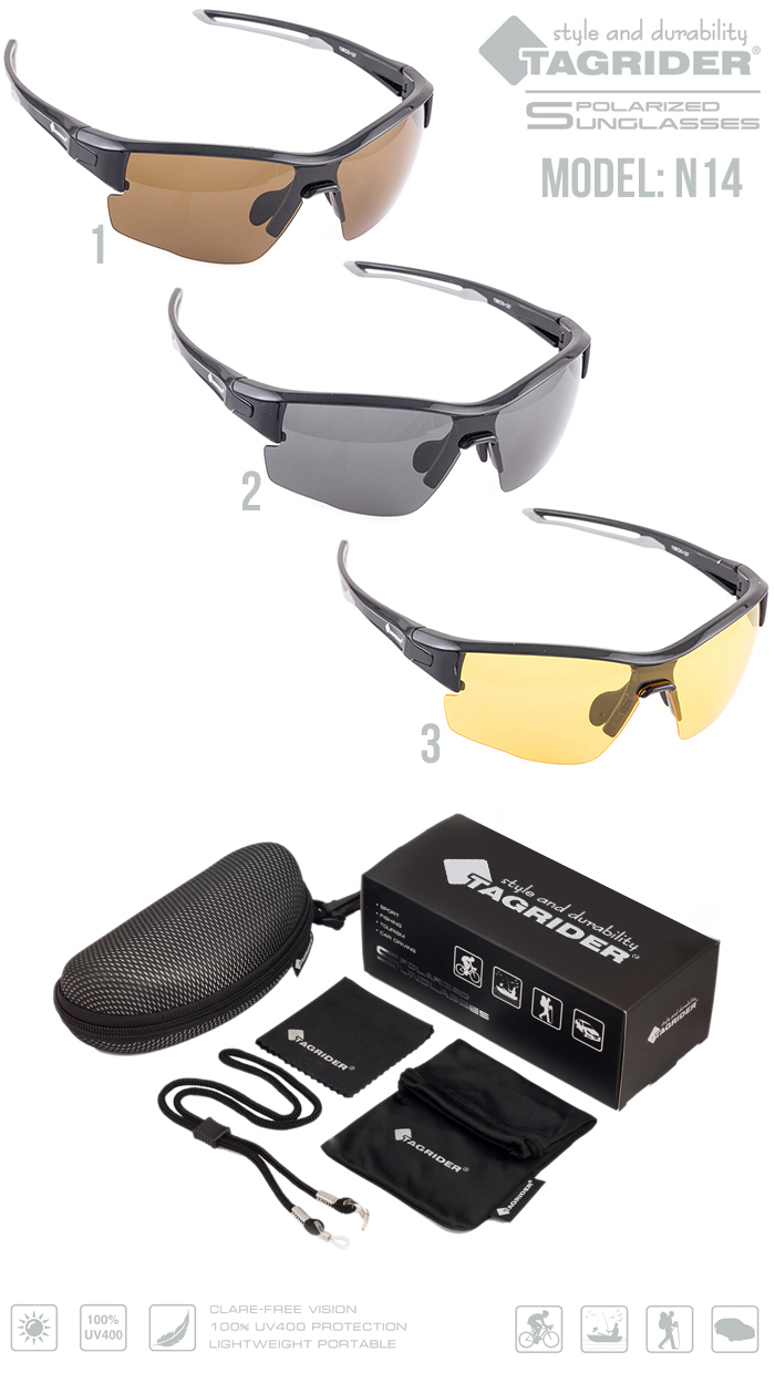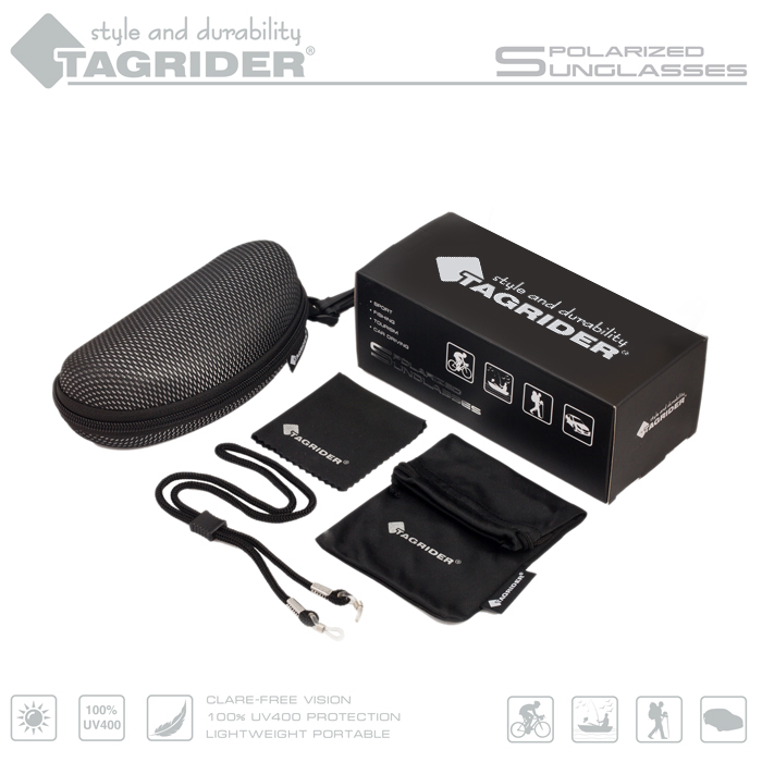 Поляризационные очки Tagrider оснащены прогрессивным 400 UV фильтром защиты от ультрафиолетового излучения, что позволяет полностью убрать негативное воздействие света на глаза и использовать их на солнце с любой интенсивностью. Прогрессивный светофильтр сохраняет всю гамму цветов предмета и усиливает свое действие с увеличением интенсивности света. Стекла с многослойной поляризацией снимают блики с любых отражающих поверхностей и делают изображение более чётким. Затылочный держатель с фиксатором, предотвратит падение и обеспечит надежную посадку очков даже при активном движении или занятии спортом. Очки выполнены из гипоаллергенного ударопрочного полимера марки ABS. В комплекте специальная карточка для проверки поляризации очков.