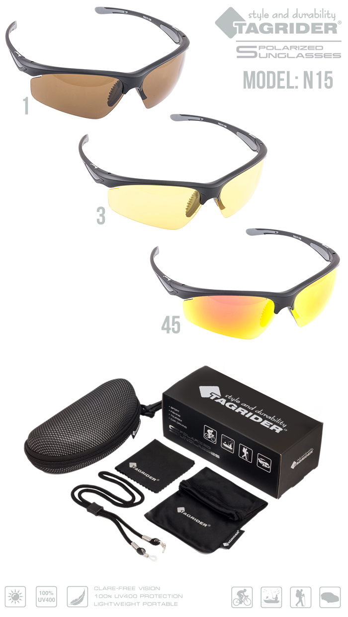 Поляризационные очки Tagrider оснащены прогрессивным 400 UV фильтром защиты от ультрафиолетового излучения, что позволяет полностью убрать негативное воздействие света на глаза и использовать их на солнце с любой интенсивностью. Прогрессивный светофильтр сохраняет всю гамму цветов предмета и усиливает свое действие с увеличением интенсивности света. Стекла с многослойной поляризацией снимают блики с любых отражающих поверхностей и делают изображение более чётким. Затылочный держатель с фиксатором, предотвратит падение и обеспечит надежную посадку очков даже при активном движении или занятии спортом. Очки выполнены из гипоаллергенного ударопрочного полимера марки ABS. В комплекте специальная карточка для проверки поляризации очков.