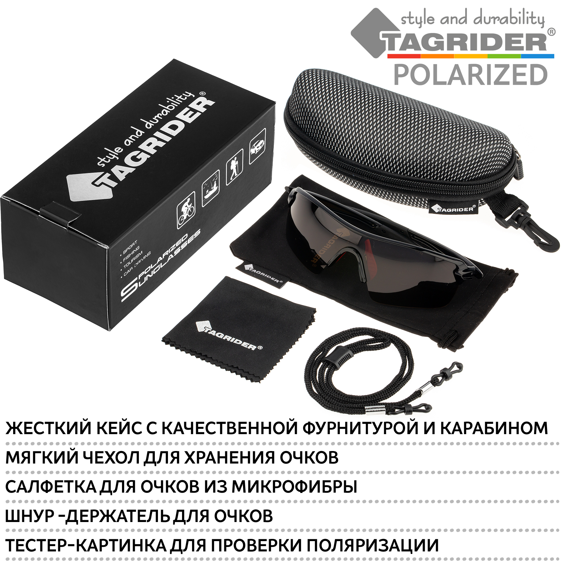 Очки поляризационные Tagrider - это идеальный выбор для тех, кто ценит комфорт и качество. Они оснащены прогрессивным UV фильтром, который защищает глаза от вредного ультрафиолетового излучения и гарантирует безопасное использование в любых условиях освещения. Прогрессивный светофильтр сохраняет естественные цвета предметов и улучшает видимость при изменении интенсивности света. Многослойная поляризация стёкол эффективно устраняет блики с отражающих поверхностей, делая изображение более чётким и контрастным. Оправа очков выполнена из гипоаллергенного и ударопрочного полимера ABS, обеспечивая максимальный комфорт и надёжность при ношении. В комплекте идёт специальная карточка для проверки поляризации очков. Для удобства пользователей очки поставляются с ударопрочным чехлом на молнии, тряпичным чехлом для хранения и практичным шнурком, который предотвращает потерю или падение очков.