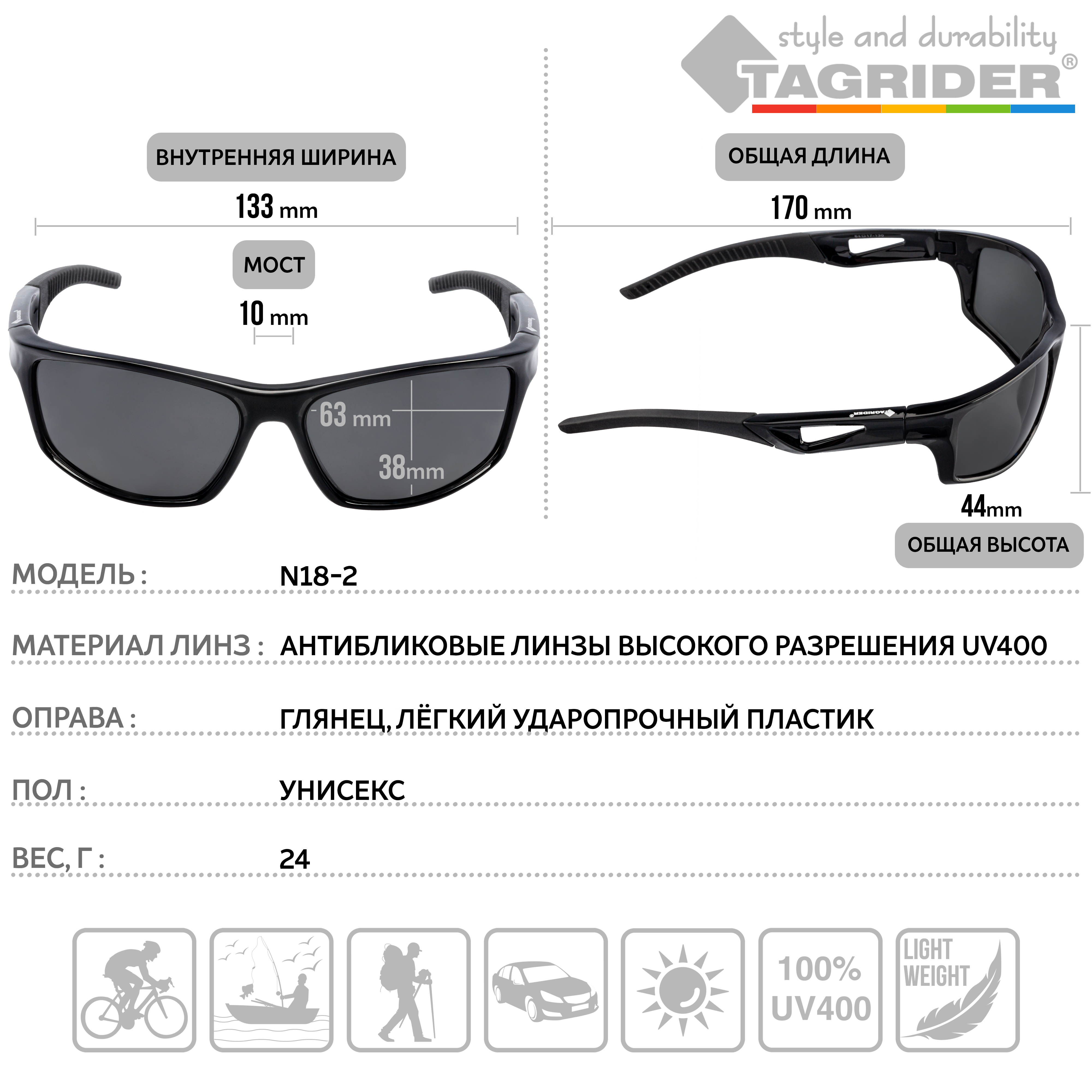 Очки поляризационные Tagrider - это идеальный выбор для тех, кто ценит комфорт и качество. Они оснащены прогрессивным UV фильтром, который защищает глаза от вредного ультрафиолетового излучения и гарантирует безопасное использование в любых условиях освещения. Прогрессивный светофильтр сохраняет естественные цвета предметов и улучшает видимость при изменении интенсивности света. Многослойная поляризация стёкол эффективно устраняет блики с отражающих поверхностей, делая изображение более чётким и контрастным. Оправа очков выполнена из гипоаллергенного и ударопрочного полимера ABS, обеспечивая максимальный комфорт и надёжность при ношении. В комплекте идёт специальная карточка для проверки поляризации очков. Для удобства пользователей очки поставляются с ударопрочным чехлом на молнии, тряпичным чехлом для хранения и практичным шнурком, который предотвращает потерю или падение очков.