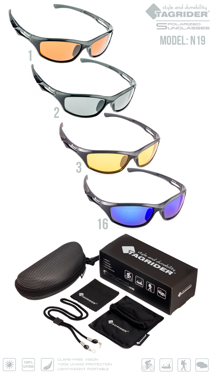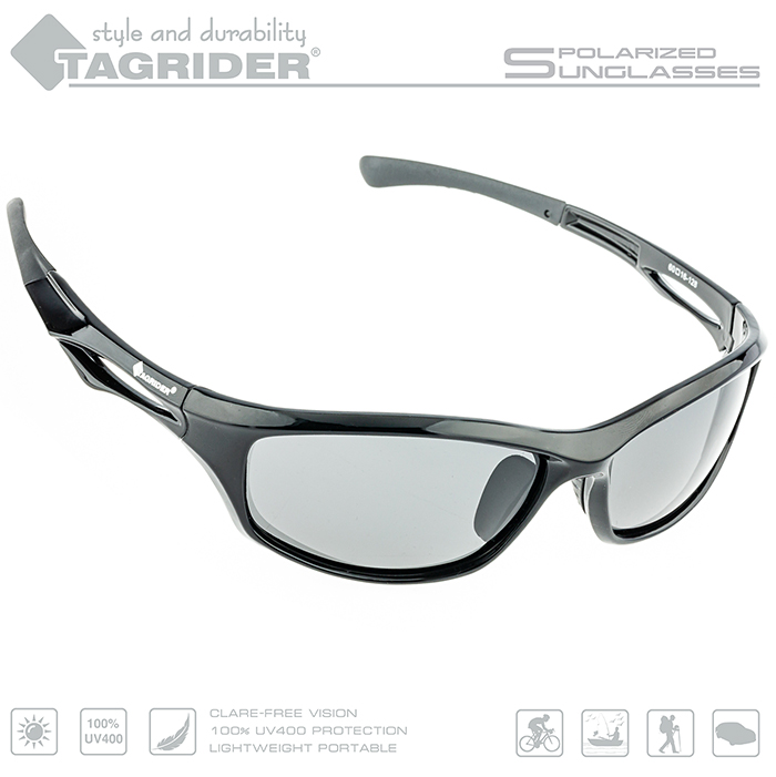 Поляризационные очки Tagrider оснащены прогрессивным 400 UV фильтром защиты от ультрафиолетового излучения, что позволяет полностью убрать негативное воздействие света на глаза и использовать их на солнце с любой интенсивностью. Прогрессивный светофильтр сохраняет всю гамму цветов предмета и усиливает свое действие с увеличением интенсивности света. Стекла с многослойной поляризацией снимают блики с любых отражающих поверхностей и делают изображение более чётким. Затылочный держатель с фиксатором, предотвратит падение и обеспечит надежную посадку очков даже при активном движении или занятии спортом. Очки выполнены из гипоаллергенного ударопрочного полимера марки ABS. В комплекте специальная карточка для проверки поляризации очков.