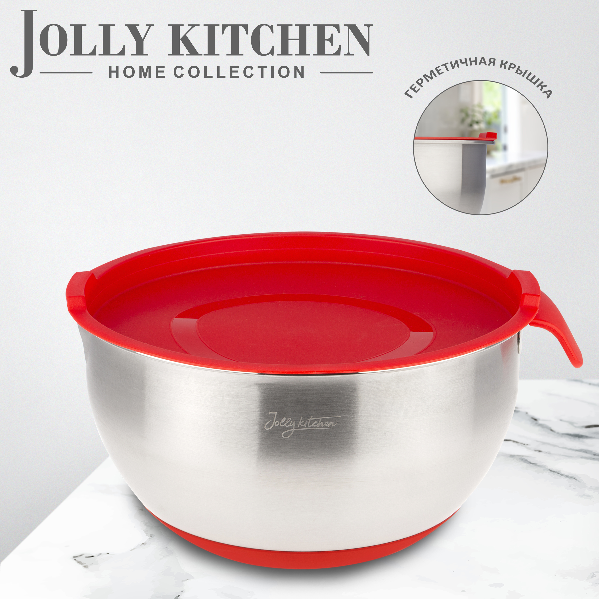 Миска Jolly Kitchen нержавеющая сталь 0,5 мм с ручкой красная диам. 24 см |