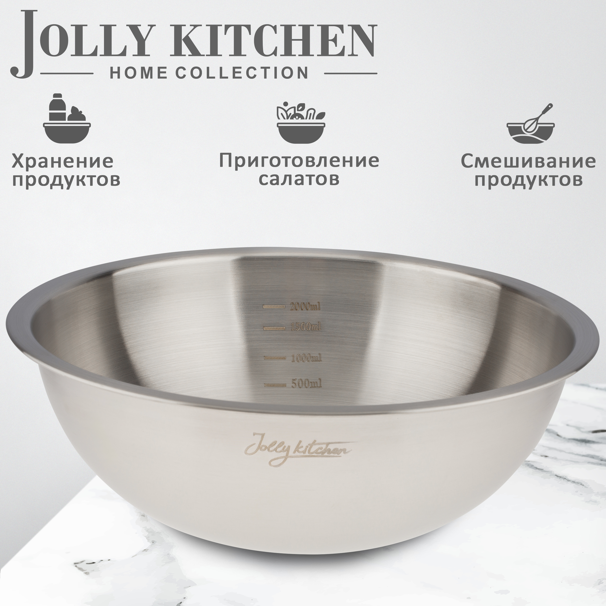 Миска-салатник Jolly Kitchen c мерной шкалой нержавеющая сталь матовый/глянец 25 см