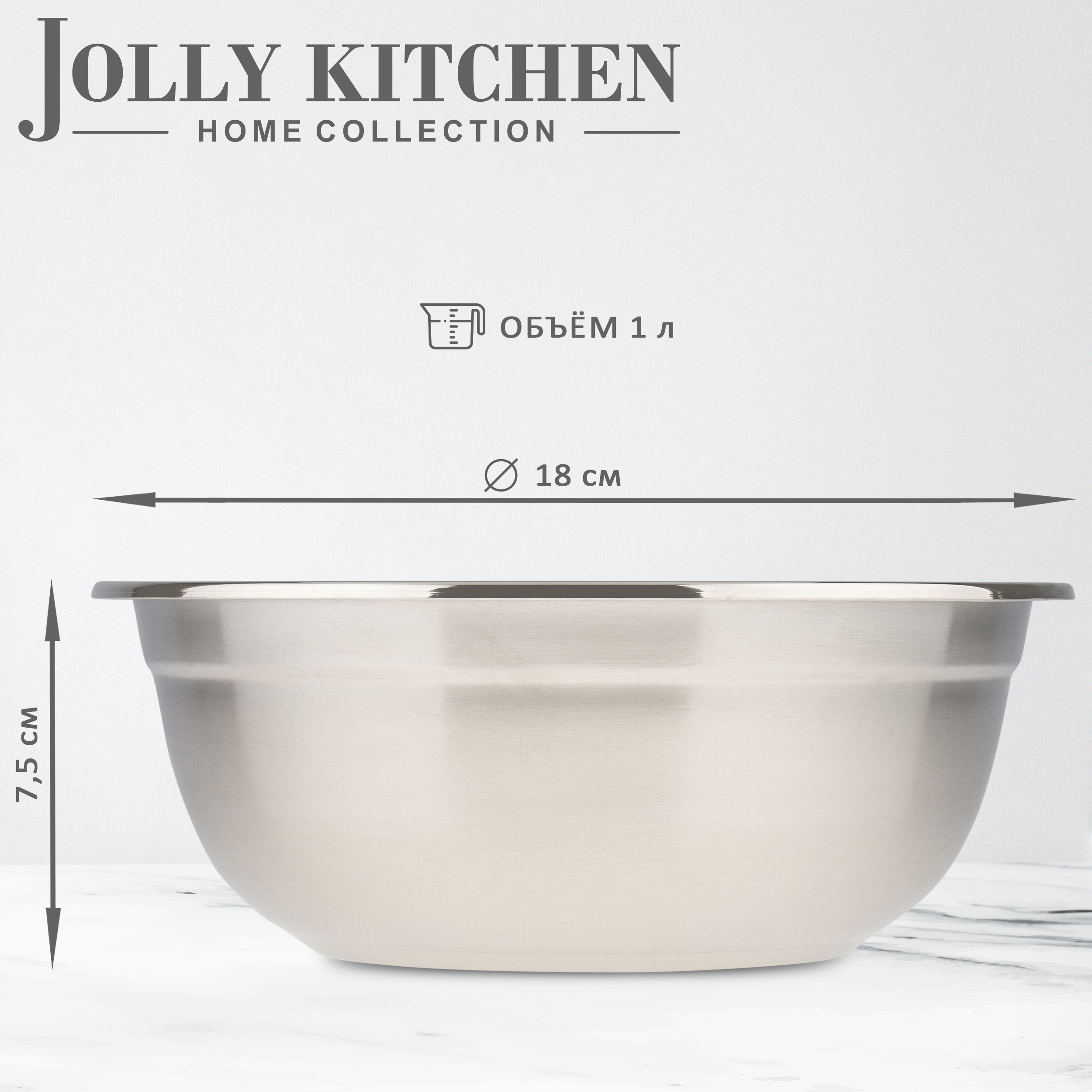 Миска-салатник Jolly Kitchen нержавеющаяcталь 0,8 мм 18 см |
