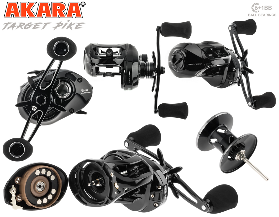 Новинка от компании Akara - мультипликаторная катушка Akara Target Pike. В тандеме с удилищем Akara Target Pike она образует мощный комплект для силовой ловли на Биг Бейты и другие тяжелые приманки. Корпус катушки имеет усиленную конструкцию и изготовлен из высокопрочного композита. Target Pike оснащена фрикционным тормозом с максимальным усилием в 12кг. Магнитная тормозная система обладает точными регулировками, что позволяет настроить снасть в соответствии с массой приманок и условиями ловли. Катушка выпускается под левую руку. Усиленная рукоять позволит вам отразить атаки самого крупного хищника. 7 высококачественных подшипников обеспечат плавность хода и полный контроль проводки. Серия Target Pike специально разработана для набирающей популярность ловли на крупные силиконовые приманки (Биг Бэйты). При этом Akara Target Pike не является узкоспециализированной катушкой. Она прекрасно подойдет для джерковой ловли в средних весах и ловли на крупные свимбейты.