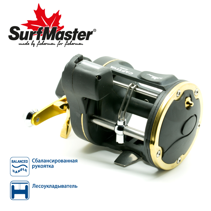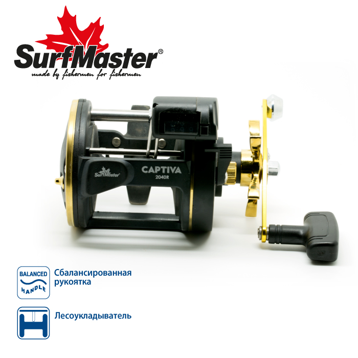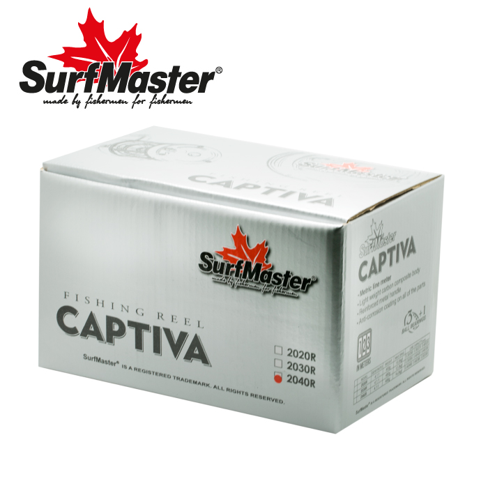 Surf Master Captiva – универсальная, силовая мультипликаторная катушка. Рекомендована для ловли троллингом и в отвес. Для контроля длины отпуска приманки или глубины лова, катушка оснащена счетчиком лески в метрах. Облегченное карбон композитное тело. Усиленная металлическая ручка с компенсатором баланса вращения. Металлические детали катушки имеют антикоррозийное покрытие. Максимальное тяговое усилие: SM2020 - 10кг, SM2030 - 12кг, SM2040 - 14кг.