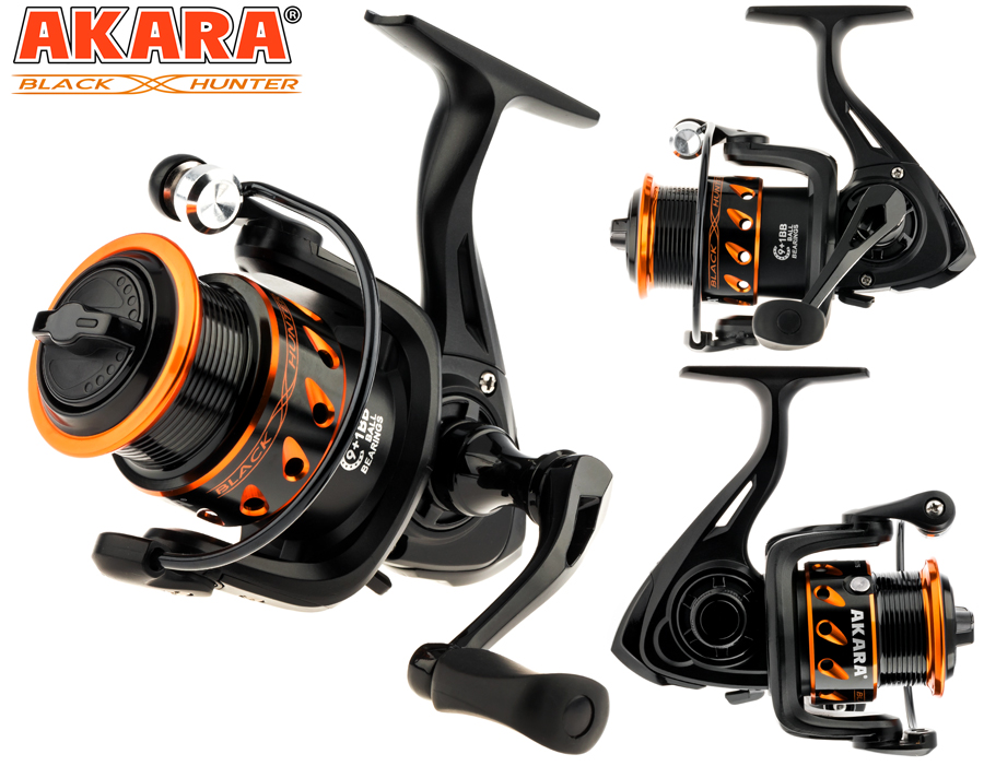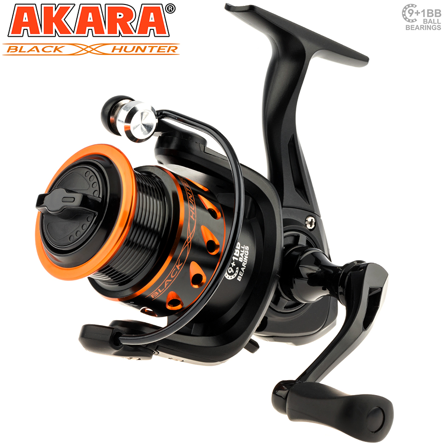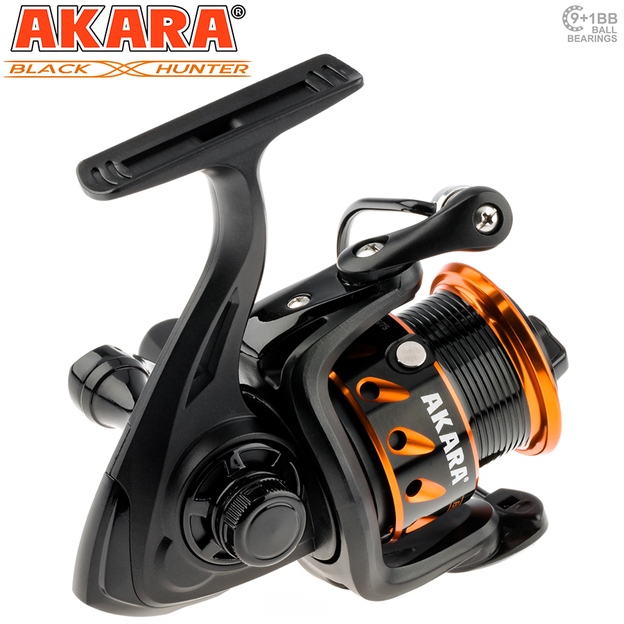 Akara Black Hunter S - модификация с низкопрофильной шпулей. Сбалансированный ход и увеличенный ресурс эксплуатации делают эту безынерционную катушку незаменимым помощником рыболова. Благодаря системе компьютерной балансировки ротора CB (Computer Balanced), и системе подшипников 9 + 1, катушка имеет плавный и равномерный ход. Полая облегченная душка лесоукладывателя способствует снижению инерции, а специальная форма ролика предохраняет от закручивания лески и позволяет использовать шнуры диаметром от 0,06мм. Силовой агрегат катушки выполнен из пары твердосплавный алюминий – бронза. Обрезиненная металлическая рукоять. Для облегчения корпус выполнен из композита на основе графита. Нагрузка на фрикцион: BHS1000 – 5,5кг, BHS2000 – 6кг, BHS3000 – 6,5кг. Основная низкопрофильная шпуля из алюминия лесоёмкостью - 0,20/90м. Дополнительная глубокая пластиковая шпуля лесоёмкостью - 0,25/120м.