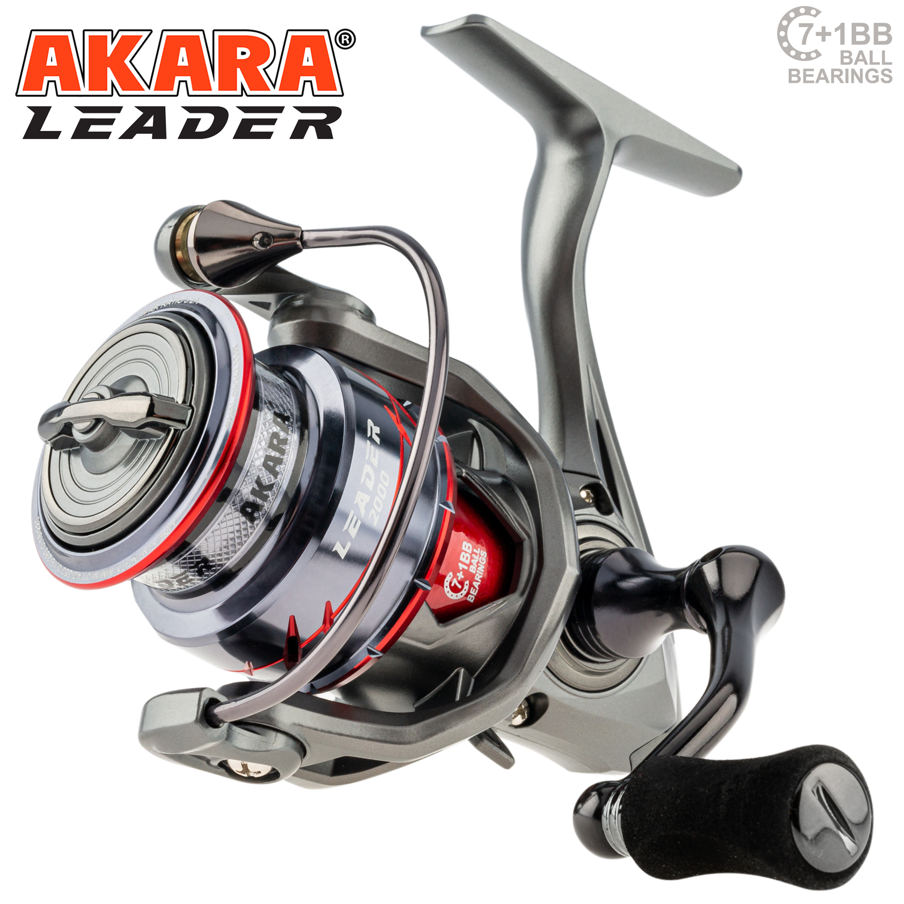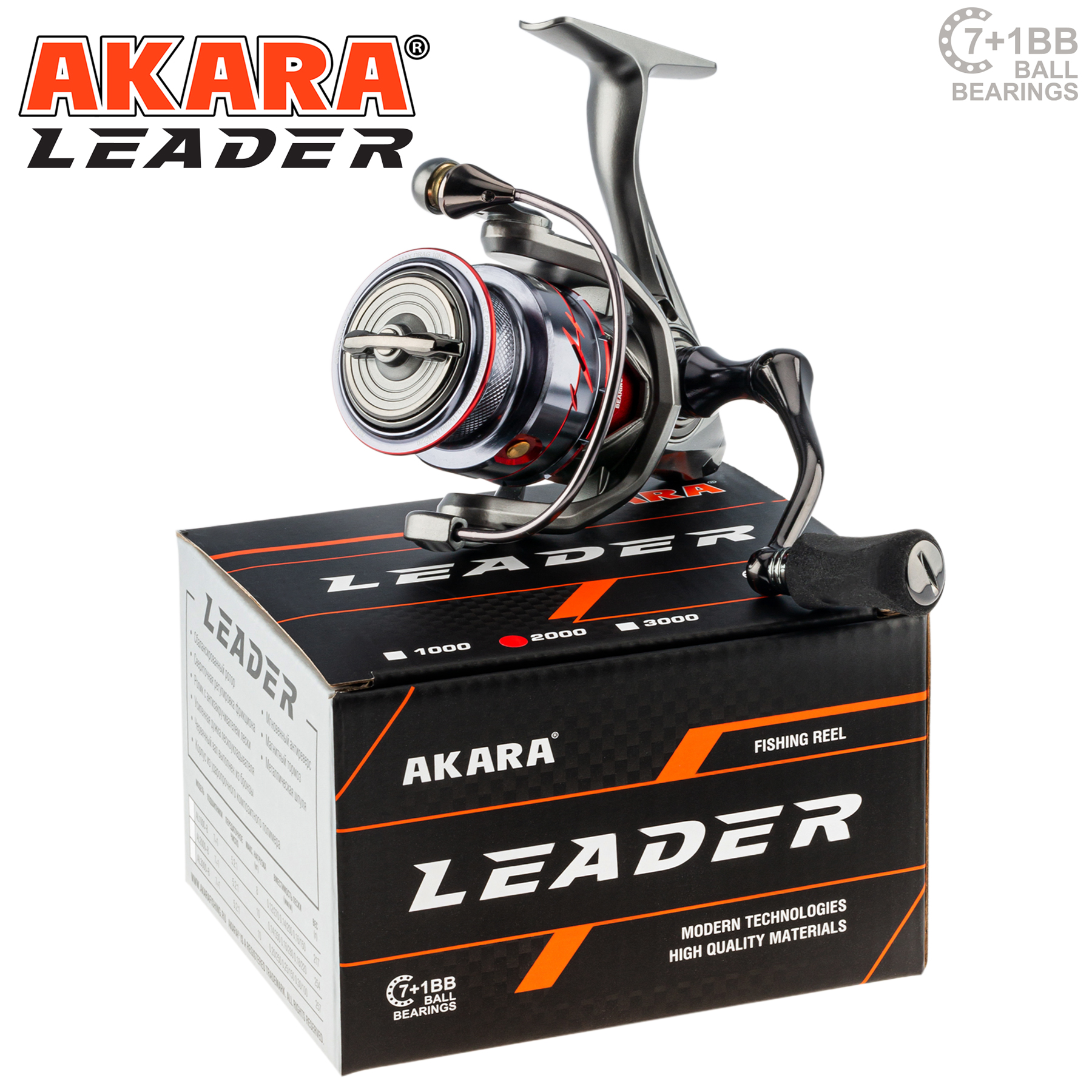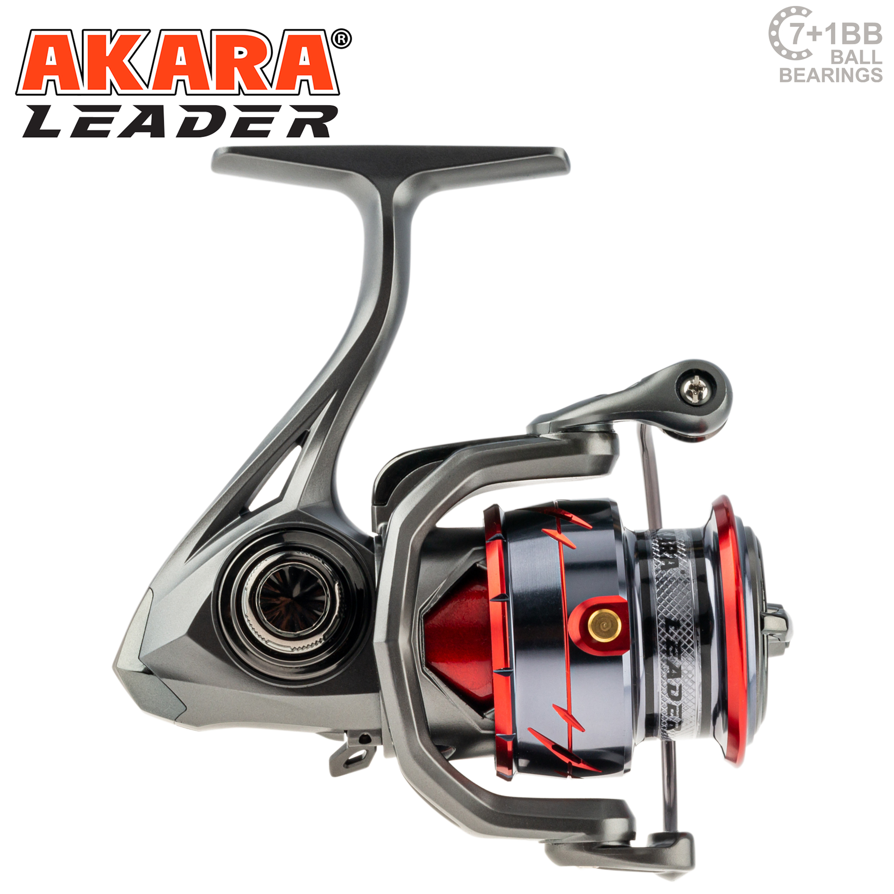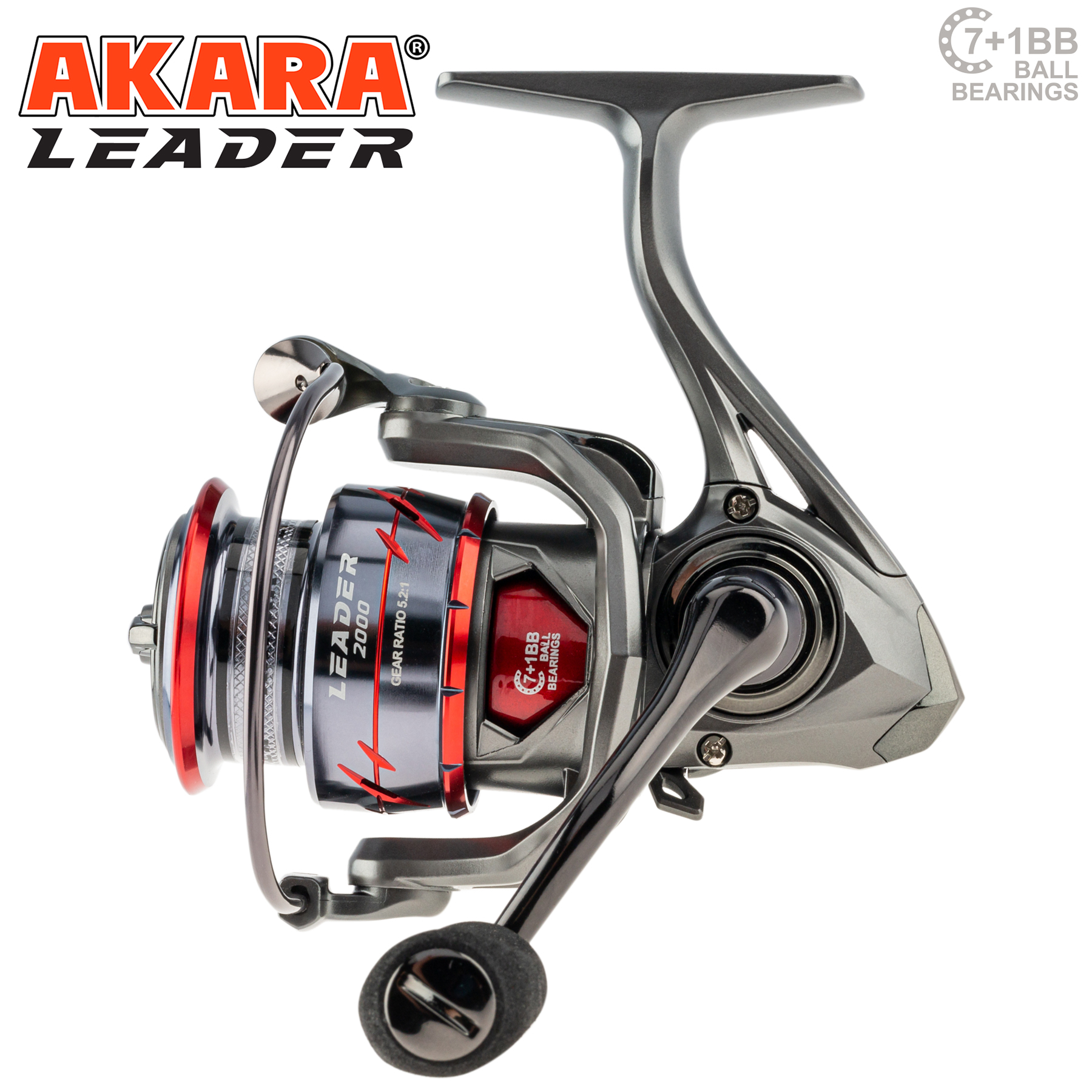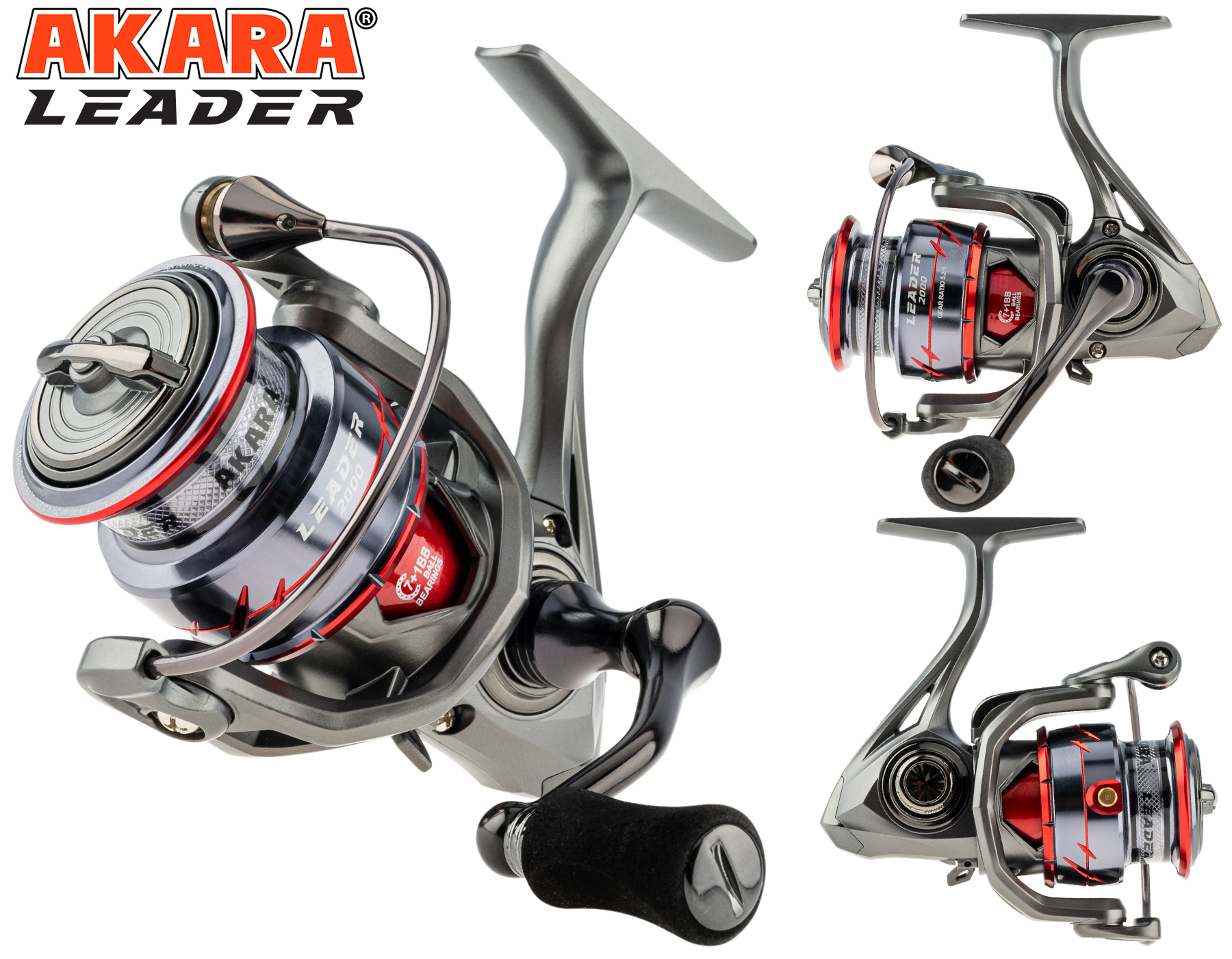 Akara Leader – новинка 2024 года. Серия безынерционных спиннинговых катушек с облегченным корпусом, выполненным из ударопрочных композитных полимеров. Катушки оснащены вкручивающейся ручкой, что делать механизм крепления более долговечным. Фрикцион катушки имеет сверхточную, многоступенчатую настройку. Внутри катушки располагаются 7+1 высокоточных шарикоподшипников и бронзовый червячный вал. Серия катушек включается в себя 3 размера: 1000, 2000 и 3000, вес которых составляет 217г, 254г и 257г, соответственно.