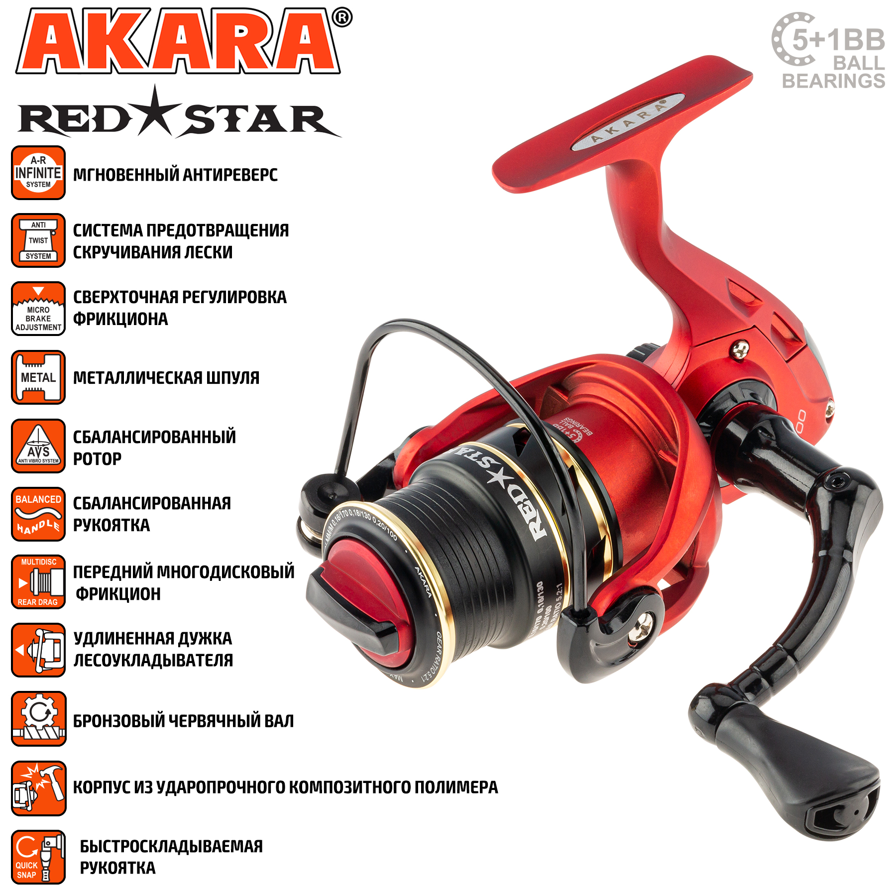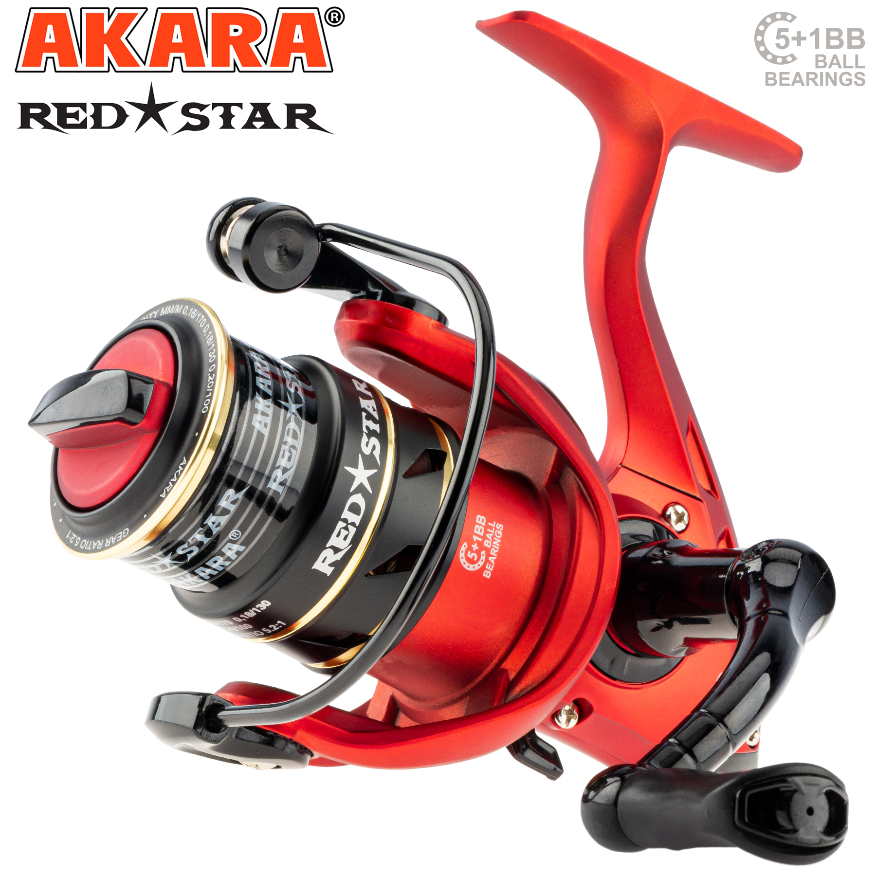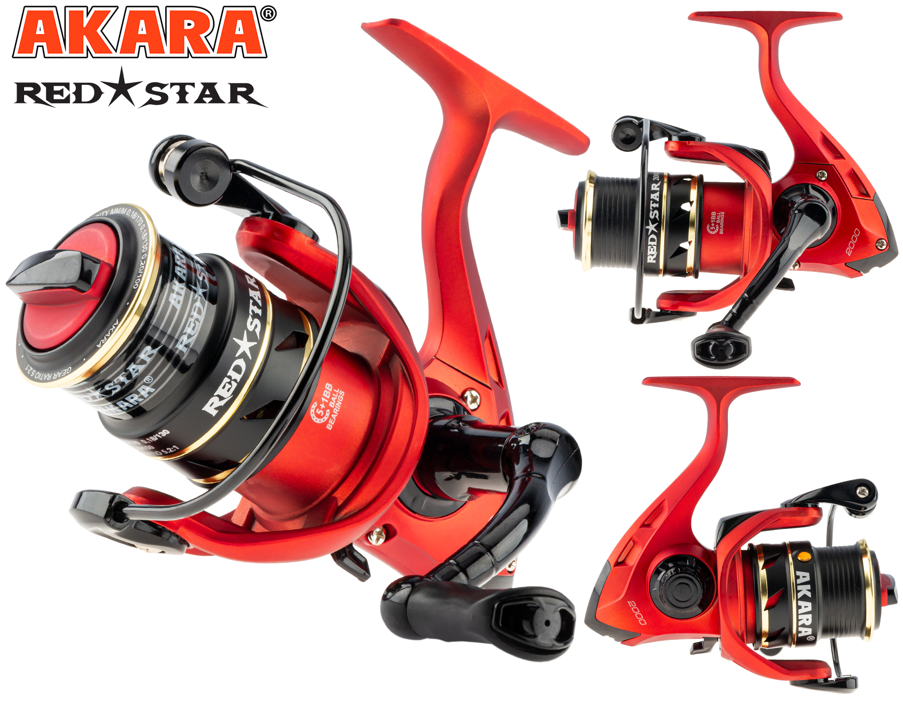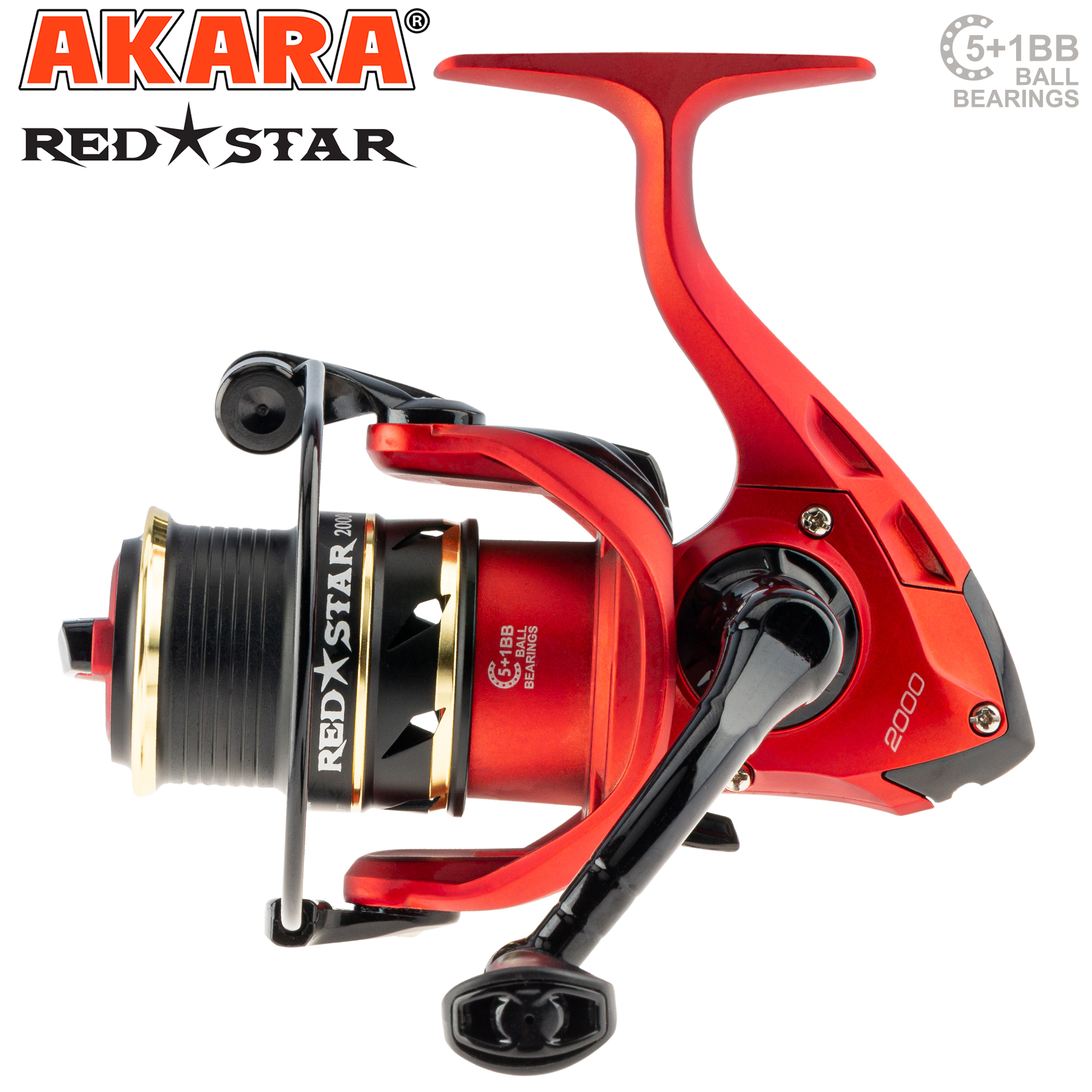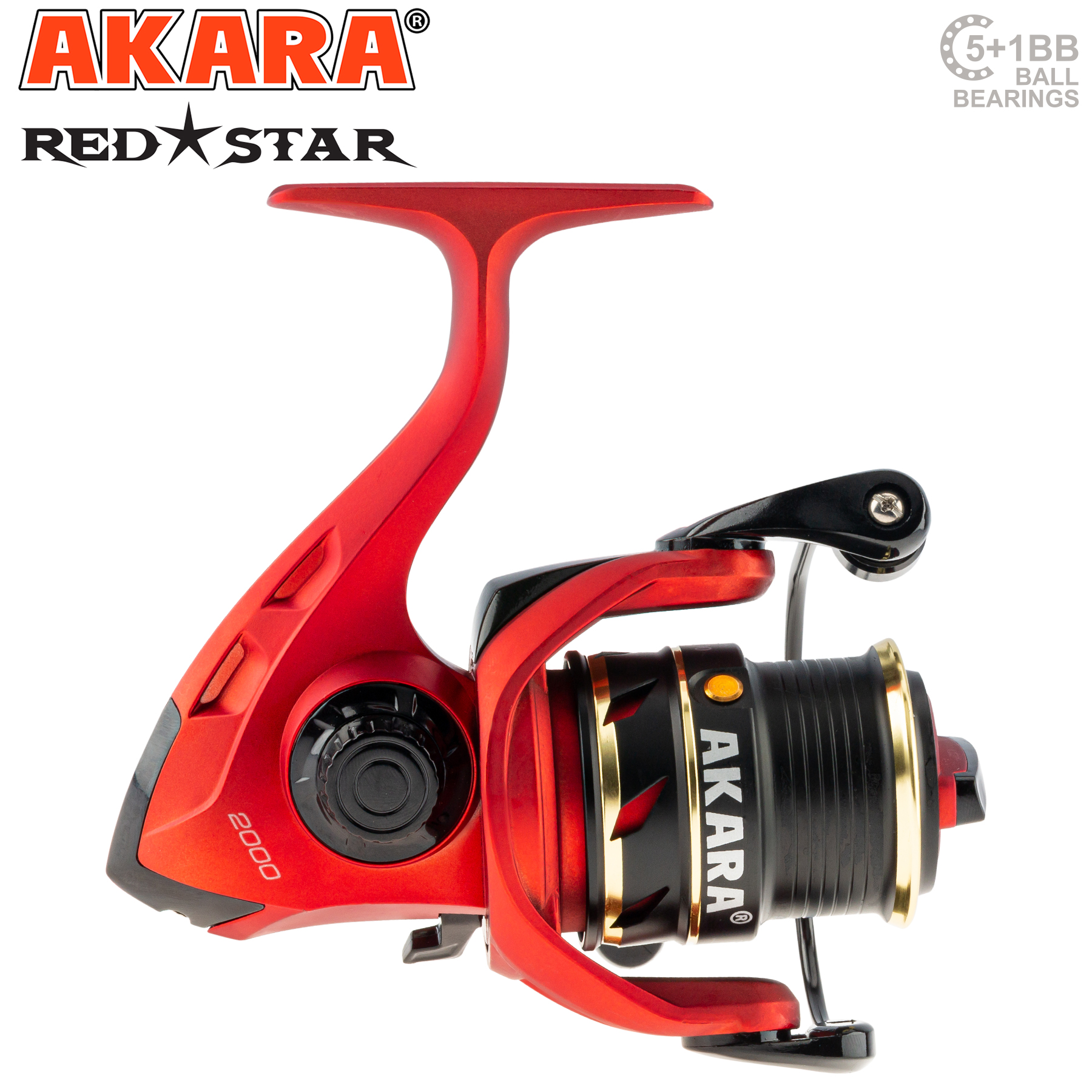 Akara Red Star - новинка 2024 года, серия недорогих спиннинговых катушек c передаточным соотношением 5,2:1. Данная серия катушек имеет низкопрофильную шпулю, что позволяет использовать более тонкие шнуры без дополнительного бэкинга. Алюминиевая шпуля с сверхточной настройкой фрикциона. Катушка с 5+1 высокоточными шарикоподшипниками, заключенными в облегченный пластиковый, но прочный корпус. В серию Akara Red Star вошли 3 модели размерами 1000, 2000, 3000, вес при этом составляет 216г, 250г, 261г, соответственно. Нагрузка на фрикцион 1000 размер – 8кг, 2000 размер – 9кг, 3000 размер – 10кг.