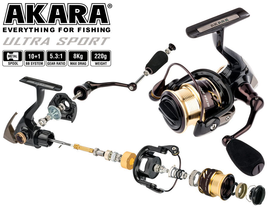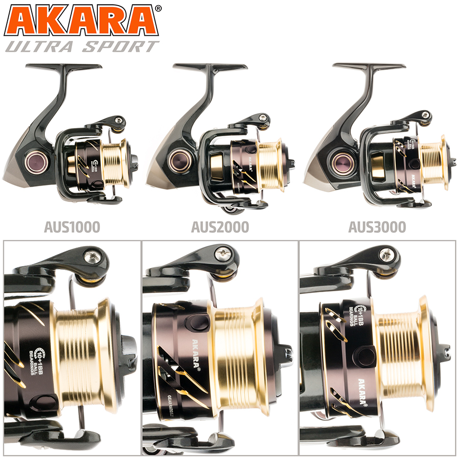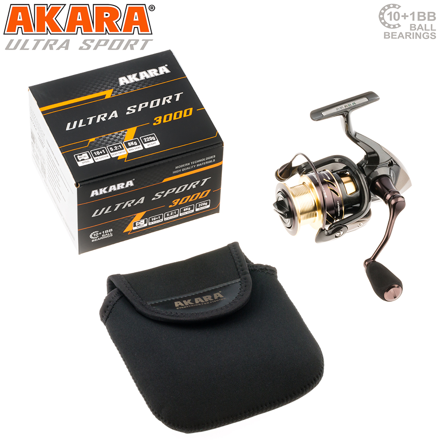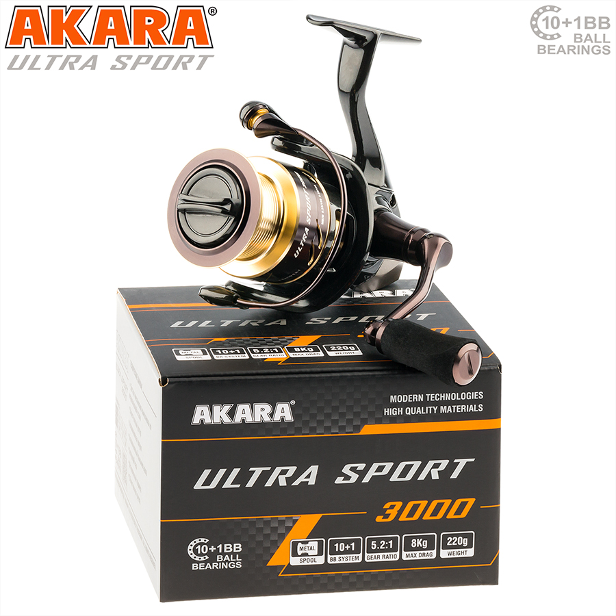 Катушки серии Akara Ultra Sport (10+1 BB) представлены в размерах 1000, 2000, 3000 и могут быть применены во многих способах лова по желанию рыболова. Катушки серии Akara Ultra Sport (10+1 BB) 1000 и 2000 оснащены «мелкой» шпулей, катушка с размерностью 3000 оснащена стандартной шпулей. Шпули катушек серии Akara Ultra Sport (10+1BB) выполнены из авиационного алюминия.