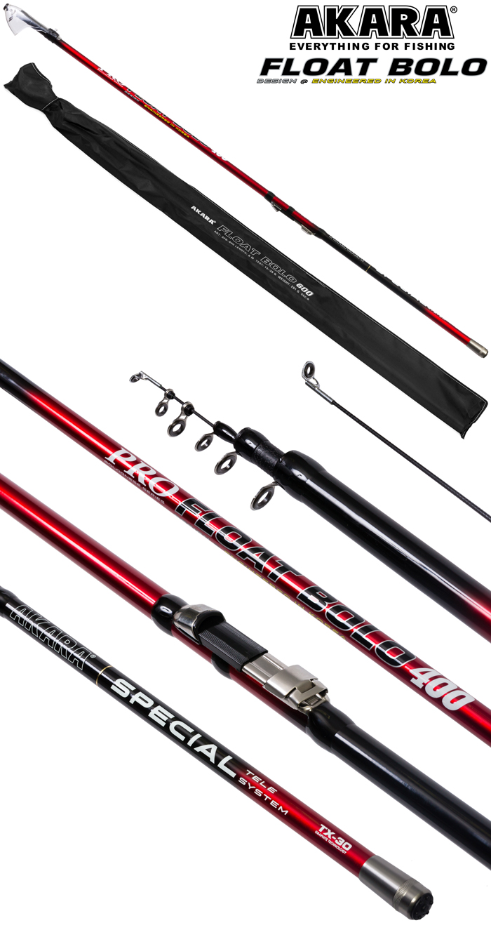 Серия болонских (с кольцами) удилищ Akara Float Bolo. Данная серия представлена тремя типоразмерами 4,00 м, 5,00 м и 6,00 м в тесте 15-35г. Удилища относятся к классу компакт. Удилища Akara Float Bolo выполнены из высокомодульного карбона TX-30 (40-ton) производства Японского концерна Toray. Удилища оснащены облегченными кольцами из оксида циркония Kujira XR Long Super Hard ZrO2.