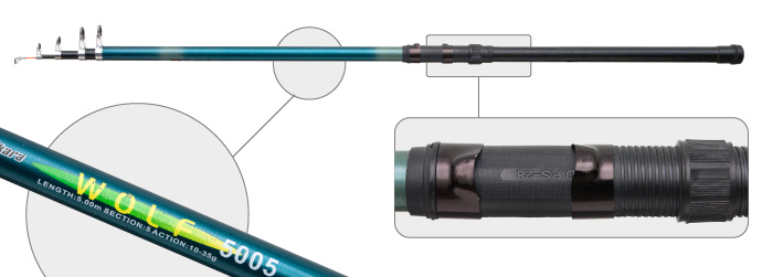 Akara Wolf - композитное удилище среднего строя. Оснащено кольцами с керамическими вставками. На удилище установлен простой, но надёжный катушкодержатель гаечного типа. Рекомендуется для поплавочной ловли.