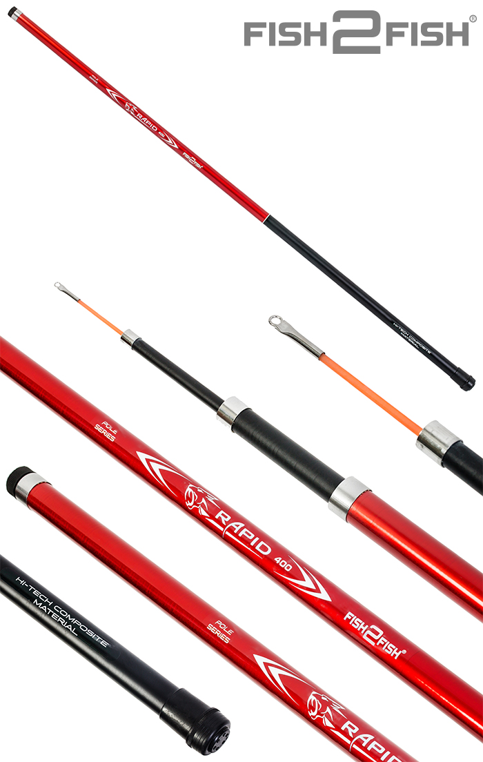 Серия маховых (без колец) удилищ Fish2Fish Rapid. Данная серия представлена четырьмя типоразмерами 3,4,5 и 6 метров с тестом в диапазоне 10-40 грамм. Телескопические удилища данной серии применяются с использованием глухой оснастки удилища. Удилища серии Fish2Fish Rapid отлично подойдут для начинающих рыболовов. Простые и надежные удилища Fish2Fish Rapid выполнены из композитного материала, хлыст выполнен из стекловолокна. Для более удобного монтажа оснастки, хлысты удилищ оснащены металлической петлей.