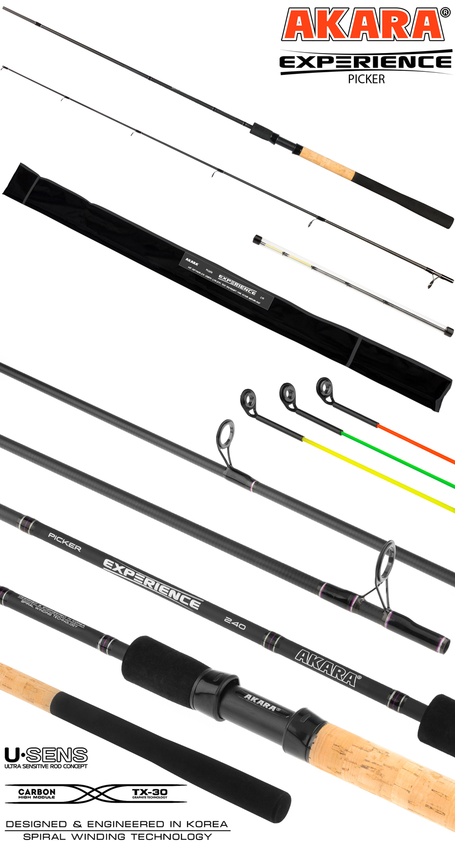 Новая серия фидеров Akara Experience Picker - удилища этой серии покажут любую, даже самую осторожную поклевку. Разработаны для ловли на небольших реках со слабым течением и стоячих водоемах, где не требуется дальний заброс. Удилища изготовлены из карбона модульностью 30 Тонн, что делает бланк легким, посылистым и очень вязким. Akara Experience Picker отлично подойдет для вываживая средней и крупной рыбы. На всех удилищах рукоять выполнена из комбинированного материала, что делает ее более износостойкой. Все удилища комплектуются 3 карбоновыми вершинками (квивертипами) разной жесткости. Удилища данной серии являются трехчастными и без труда поместятся практически в любой чехол или тубус, длина в сложенном виде от 1,05 до 1,35м.