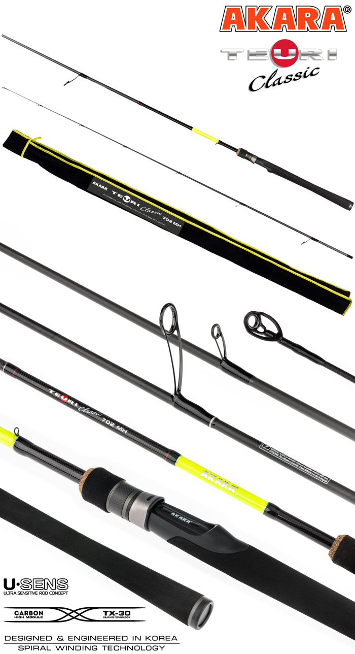 Спиннинги Akara Teuri Classic - это широкая линейка удилищ для самых разных условий ловли. Данные спиннинги собраны на основе бланка из высокомодульного карбона TX-30 (40-ton) производства Японского концерна Toray. При производстве используется современная технология UPIT (Under Pressure Innovative Technology) при которой бланк спиннинга накатывается под давлением в термической камере. Использование данной технологии позволяет создать бланки с минимальным количеством связующего вещества и высокой плотности скручивания. Спиннинги Akara Teuri Classic укомплектованы облегченными кольцами из оксида циркония Kujira XR Long Super Hard ZrO2 (1600- 1800H, kg/mm2) расставленными по технологии New Guide System, которая позволяет оптимально расположить кольца на бланке, определить их количество и размер (вес). Вы можете быть уверенны в равномерном распределении нагрузки на бланк удилища в момент вываживания добычи. При этом спиннинг сохраняет отличные бросковые характеристики и сохраняет целостность вашего шнура в течении долгого времени. При производстве наших спиннингов мы стараемся совместить новейшие разработки и технологии с потребностями современных рыболовов во всех регионах нашей страны и за ее пределами. Также мы стремимся сделать наши удилища доступными для рядовых пользователей и людей, которые только начинают свой путь в мире рыбалки.