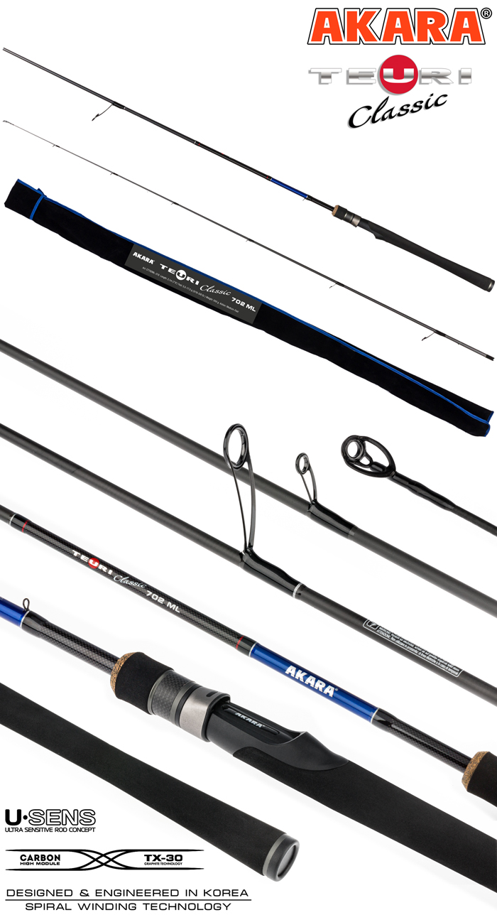 Спиннинги Akara Teuri Classic - это широкая линейка удилищ для самых разных условий ловли. Данные спиннинги собраны на основе бланка из высокомодульного карбона TX-30 (40-ton) производства Японского концерна Toray. При производстве используется современная технология UPIT (Under Pressure Innovative Technology) при которой бланк спиннинга накатывается под давлением в термической камере. Использование данной технологии позволяет создать бланки с минимальным количеством связующего вещества и высокой плотности скручивания. Спиннинги Akara Teuri Classic укомплектованы облегченными кольцами из оксида циркония Kujira XR Long Super Hard ZrO2 (1600- 1800H, kg/mm2) расставленными по технологии New Guide System, которая позволяет оптимально расположить кольца на бланке, определить их количество и размер (вес). Вы можете быть уверенны в равномерном распределении нагрузки на бланк удилища в момент вываживания добычи. При этом спиннинг сохраняет отличные бросковые характеристики и сохраняет целостность вашего шнура в течении долгого времени. При производстве наших спиннингов мы стараемся совместить новейшие разработки и технологии с потребностями современных рыболовов во всех регионах нашей страны и за ее пределами. Также мы стремимся сделать наши удилища доступными для рядовых пользователей и людей, которые только начинают свой путь в мире рыбалки.