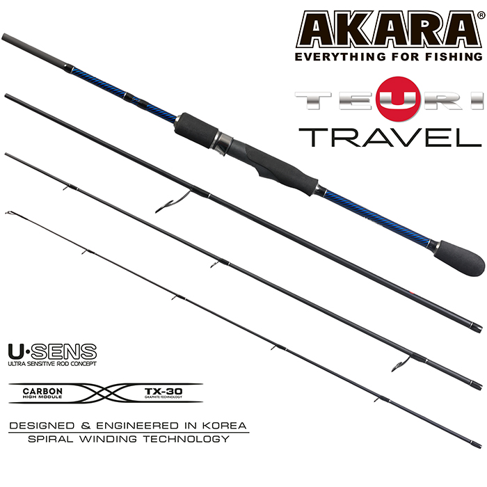 Спиннинги Akara Teuri Travel - линейка компактных удилищ дополняет отлично себя зарекомендовавшие серии Teuri и Teuri Classic, которые подходят для самых разных условий ловли. Cпиннинги собраны на основе бланка из высокомодульного карбона TX-30 (40-ton), производства Японского концерна Toray. Удилища данной серии представлены в длине 2,28 метра. При производстве используется современная технология UPIT (Under Pressure Innovative Technology) при которой бланк спиннинга накатывается под давлением в термической камере. Данная технология позволяет создать бланки с минимальным количеством связующего вещества и высокой плотности скручивания. Это делает спиннинги звонкими, чувствительными, при полном сохранении прочностных характеристик. У удилищ серии Teuri Travel разнесенная неопреновая рукоять эргономичной формы. Надежный катушкодержатель исключит появление люфтов катушки во время рыбалки.