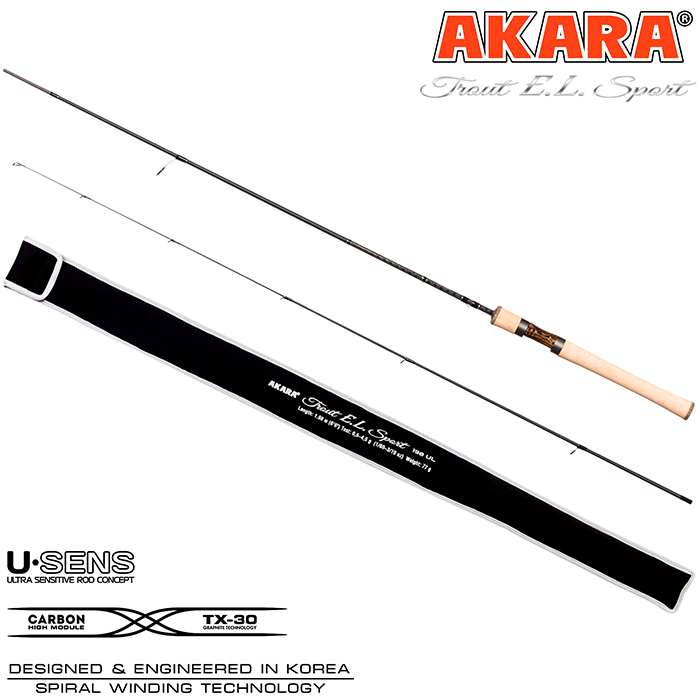 Спиннинг штекерный угольный Akara Trout E.L Sport UL (0,5-4,5) 1,98 м с цельной ручкой