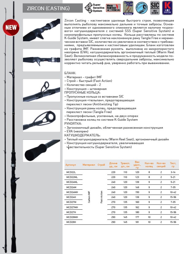 Кастинговое удилище быстрого строя, позволяющее выполнять рыболову максимально дальние и точные забросы. Основным отличием от одноименного спиннинга является наличие куркового» катушкодержателя с системой SSS (Super Sensitive System) инизкопрофильных пропускных колец. Кольца расставлены по системе K-Guide System, имеют слегка наклоненную раму Tangle Free и керамические вставки SIC, количество их увеличено в соответствии с требованиями, предъявляемыми к кастинговым удилищам. Бланк изготовлен из графита IMF. Разнесенная рукоять выполнена из микропористого неопрена (EVA), катушкодержатель эргономичный теплый (Warm Reel Seat). Великолепная сбалансированность и продуманность Maximus Zircon Casting позволяют рыболову осуществлять сверхдальние забросы, максимально корректно читать рельеф дна, уверенно работать при вываживании. Бланк: Материал - графит IMF. Строй – быстрый (Fast Action). Количество секций - 2. Конструкция – штекерная. Пропускные кольца: Пропускные кольца cо вставками SIC. Конструкция тюльпан», предотвращающая перехлест лески (Antitwisting Tip). Конструкция рамы колец, предотвращающая перехлест лески (Tangle Free). Низкопрофильные, усиленные, на двух опорах. Расстановка колец по системе K-Guide System. Рукоятка: Эргономичный дизайн. Облегченная разнесенная конструкция. EVA (неопрен). Катушкодержатель: Теплый катушкодержатель (Warm Reel Seat). Эргономичный дизайн. Конструкция катушкодержателя, увеличивающая чувствительность (Super Sensitive System).